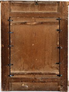 Tempera su tavola centinata, cm. 50x42. Con cornice a tabernacolo