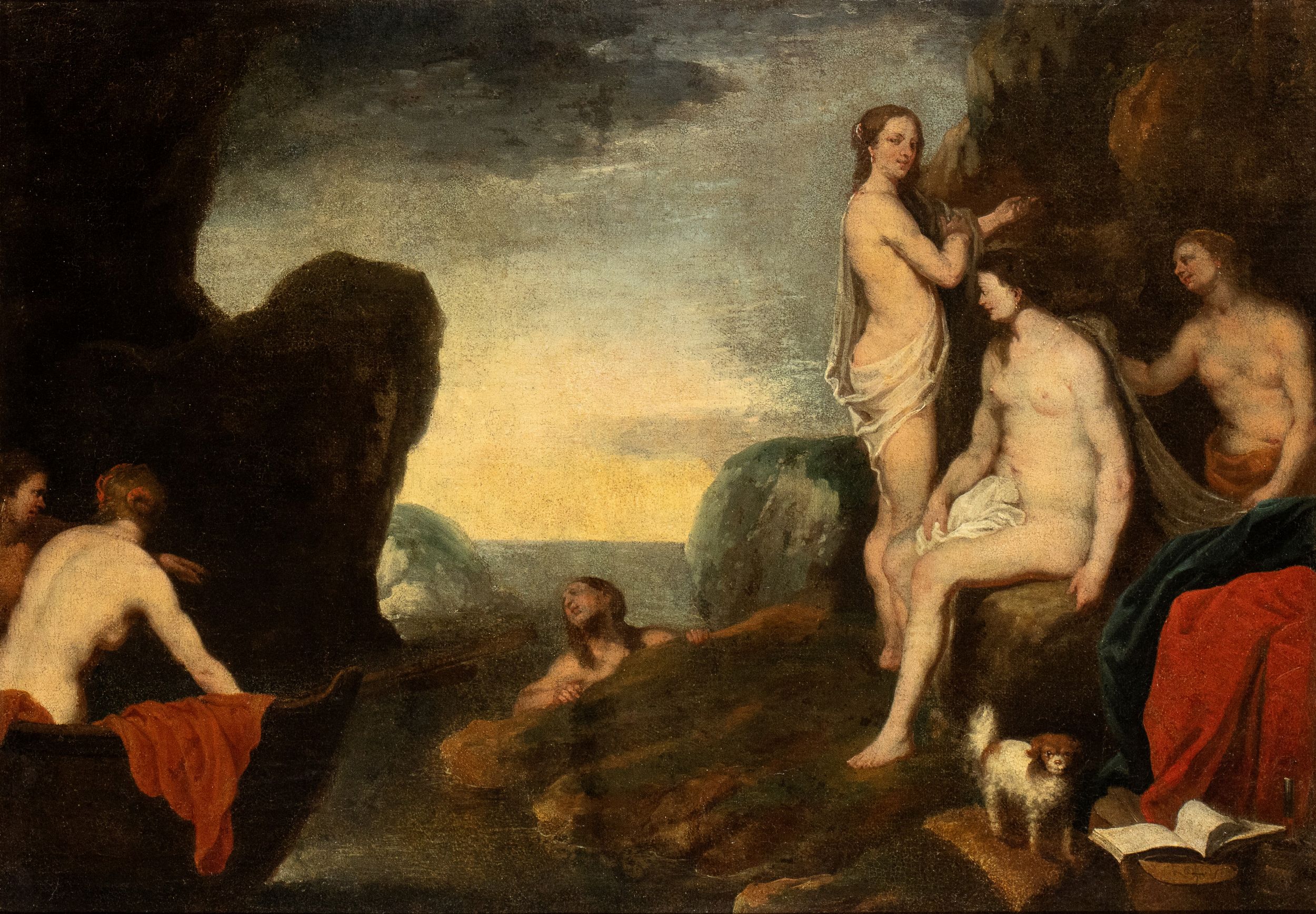 Il dipinto è accompagnato da un'expertise del prof. Ferdinando Bologna. Questo notevole dipinto inedito costituisce una significativa aggiunta al catalogo di Anton Maria Vassallo, al quale fu ricondotto da Ferdinando Bologna. Molteplici sono i suoi motivi d’interesse, a partire dalla meno frequente incursione del pittore nell’ambito della pittura mitologica di destinazione privata; ma ancor più intrigante è qui l’attenzione mostrata da Vassallo nei confronti della pittura di Poussin e soprattutto di Cornelis van Poelenburg, seppur mediata, come sempre, dalla cultura rubensinana del suo maestro Vincent Maló. Lo stile presenta i caratteri tipici di Vassallo nell'impianto compositivo, nei nudi femminili e nel paesaggio, sino al delizioso inserto animalista del cagnolino in basso a destra e al brano di natura morta della chitarra con sopra il libro aperto. All’interno della sua produzione di soggetto profano si possono trovare molteplici persuasivi termini di confronto a supporto dell’attribuzione: da una Diana e Callisto transitata qualche anno fa da Christie’s Londra, ai Satiri presso un’erma della Galleria di Palazzo Bianco a Genova, da Giunone e Argo a Cerere dispensa i doni della terra , entrambi conservati presso collezioni private genovesi. BIBLIOGRAFIA DI CONFRONTO: A. Orlando, Anton Maria Vassallo , Genova 1999.