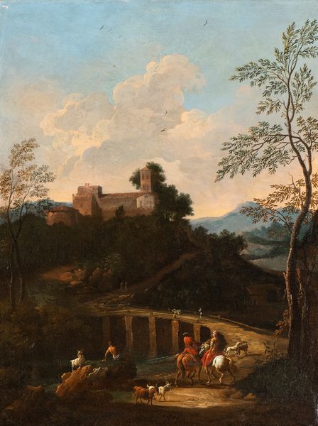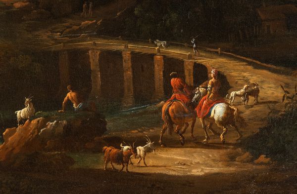 Paesaggio con ponte, cavalieri, pastori e armenti