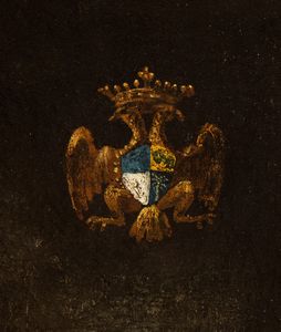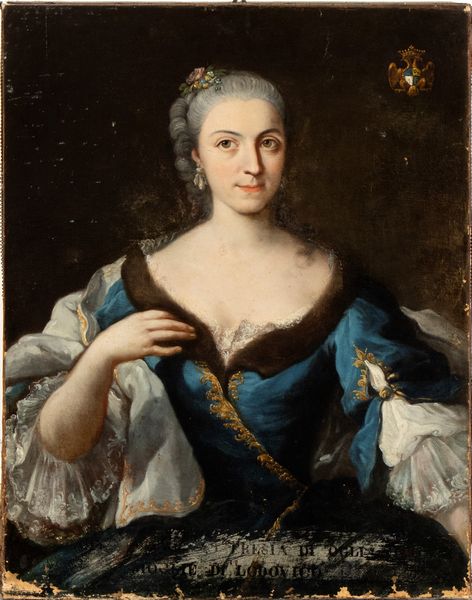 Ritratto di dama in abito blu con stemma gentilizio