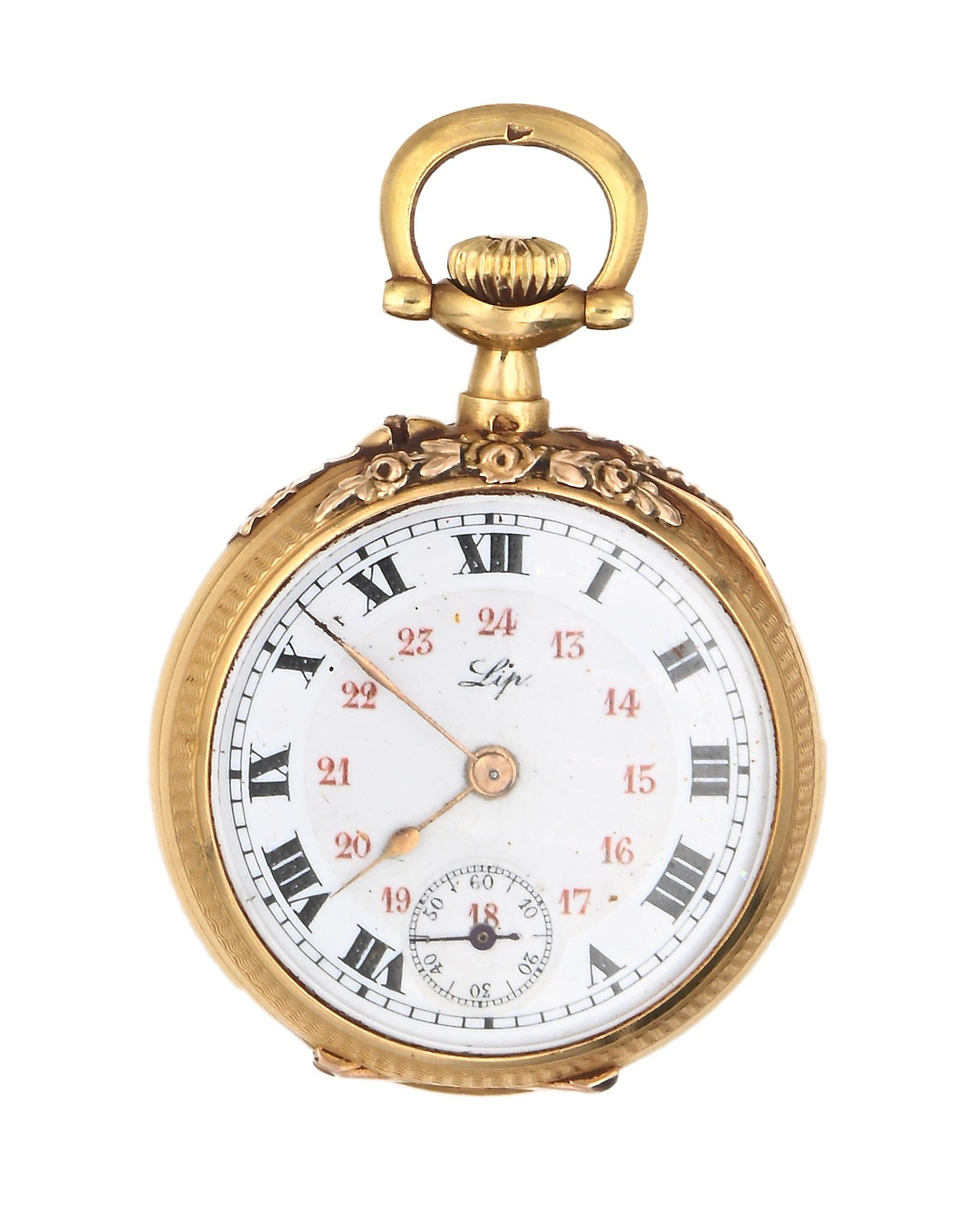 Lip - Orologio da tasca monachina remontoir con cassa in oro incisa e sbalzata. [..]