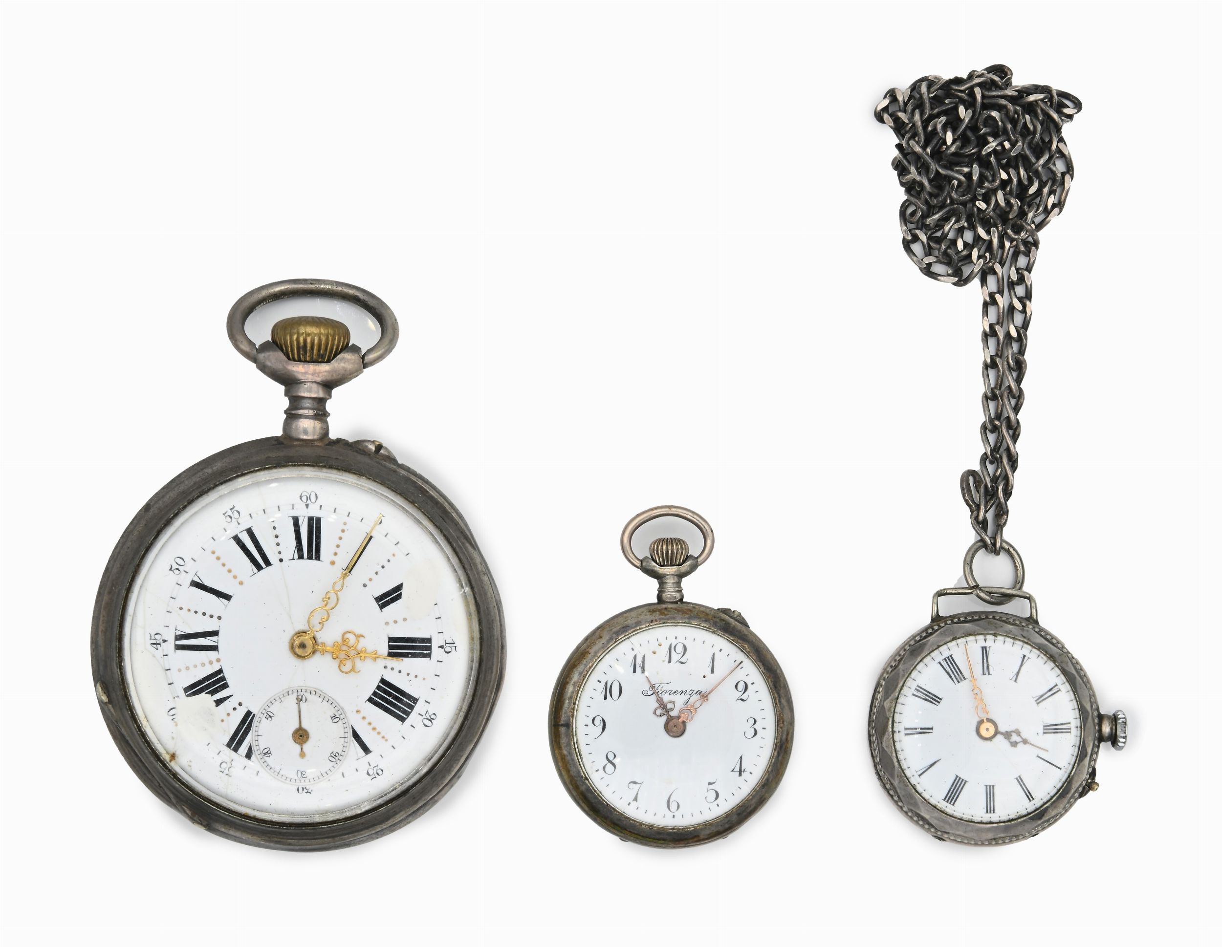 Lotto 3 orologi da tasca remontoir con scappamento a cilindro in argento e metallo [..]