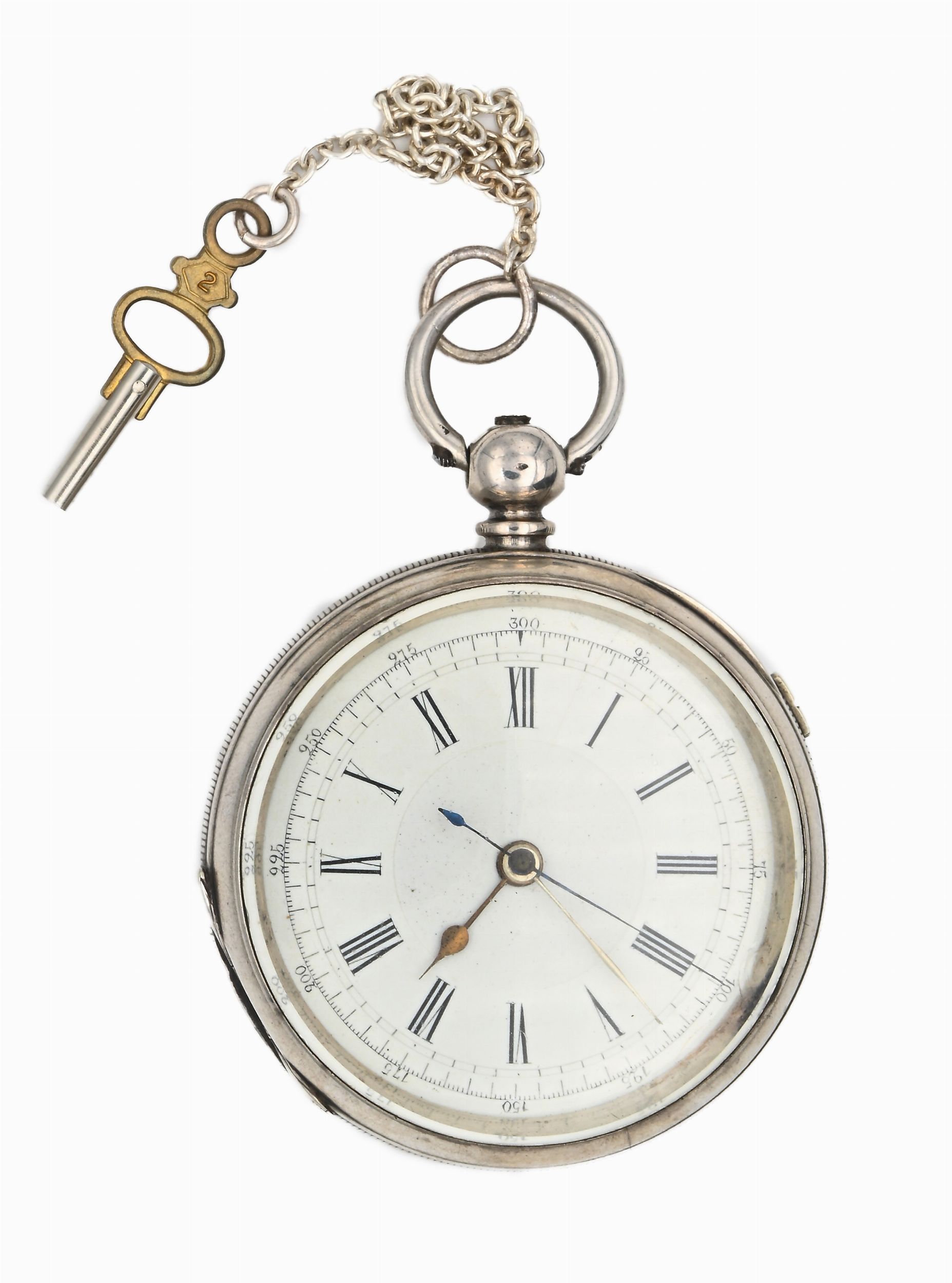 Orologio contasecondi a chiavetta da tasca da uomo in argento 935/000. Meccanica [..]