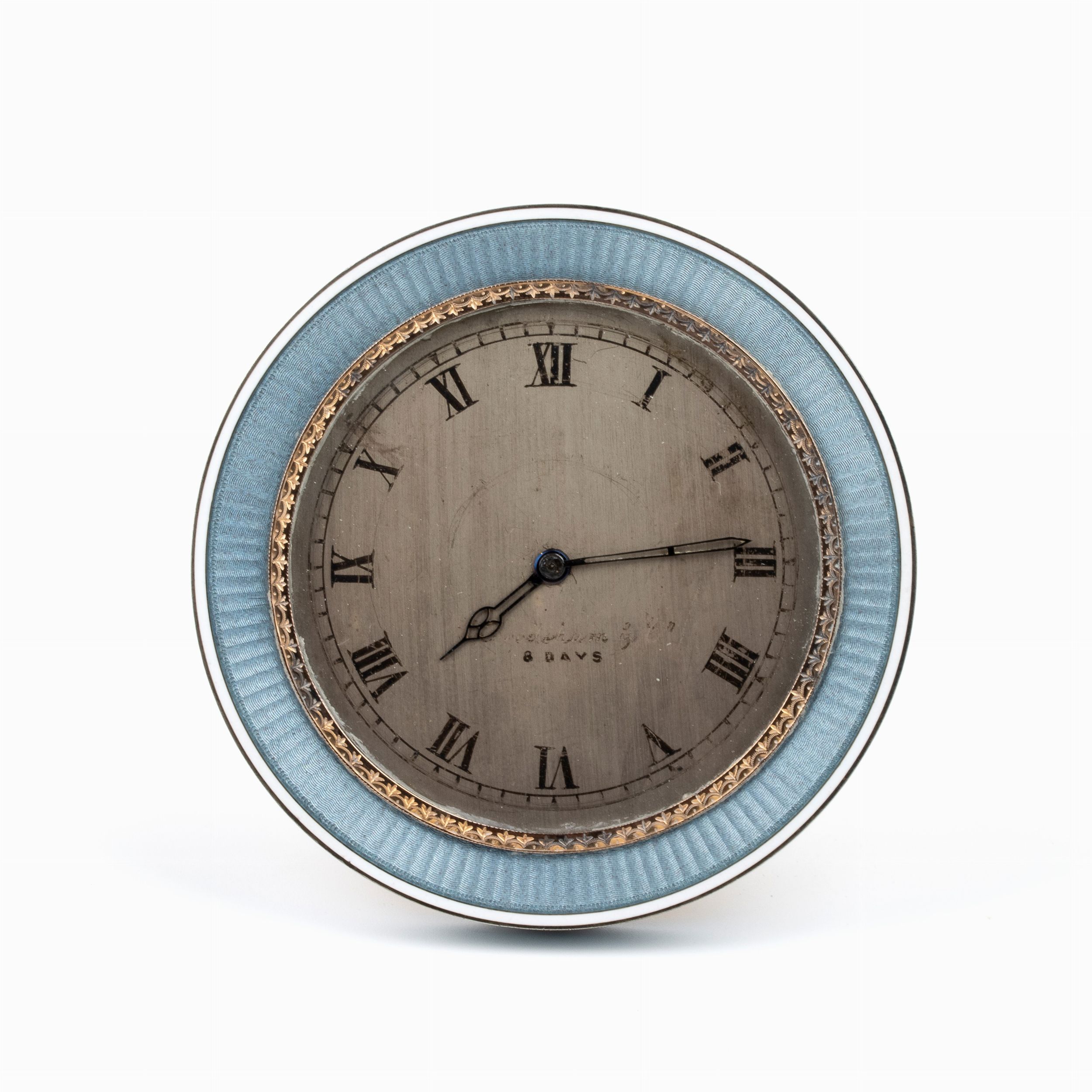 Altezza x larghezza x profonditŕ: 9 x 9 x 2 cm. Peso: 271,8 gr. Anni '20 - '30 Cassa di forma circolare con smalti guilloché nei toni azzurri e cornice perimetrale in smalto bianco. Quadrante argenté con numeri romani e sfere neri riportante le iscrizioni 'C. Frodsham & Co. - 8 DAYS'. Nella parte posteriore della cassa in ottone 'FRANCE - GEORGE MEYER - FRANCE - SIX JEWELS NO ADJUSTED - METAL DORE - PB'. La Charles Frodsham & Co. è una storica azienda inglese di orologeria, fondata da Charles Frodsham, uno dei più rinomati orologiai britannici del XIX secolo. La ditta è famosa per la produzione di orologi di precisione e cronometri marini di alta qualità. Classificazione dello stato di conservazione: *** discreto. La cassa dell’orologio è in un buono stato di conservazione con le normali usure e difetti commensurati all’epoca e all’uso nel tempo; numeri e scritte sul quadrante leggermente scolorite. Il movimento dell’orologio è attualmente funzionante ma potrebbe necessitare di una verifica tecnica.