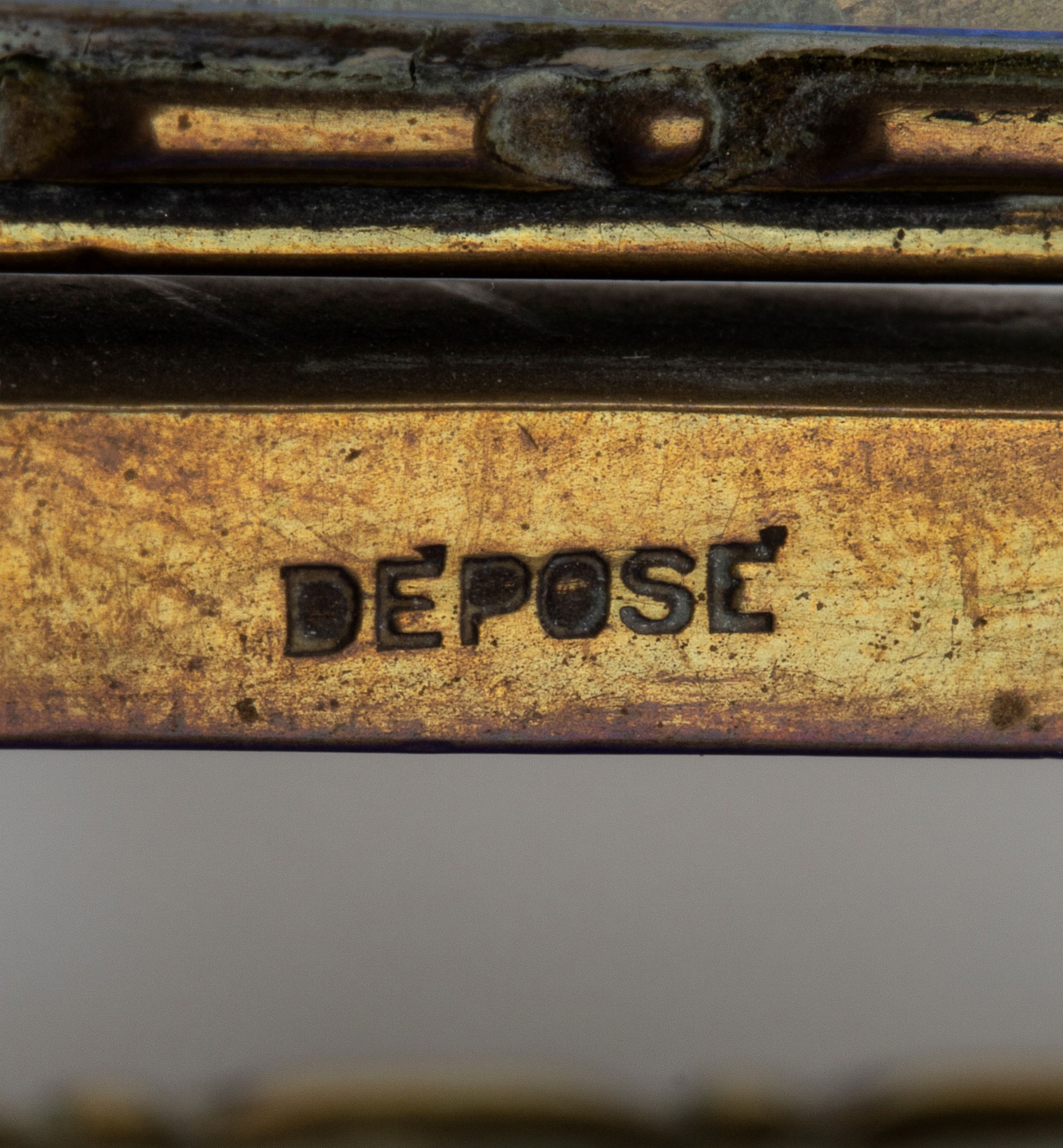 Altezza x larghezza x profonditŕ: 9,5 x 9,4 x 4,6 cm. Peso: 376 gr. Anni '20 - '30 Cassa basculante in ottone con smalti guilloché nei toni del blu poggiante su basamento rettangolare. Quadrante con i medesimi smalti, lunetta delle ore dorata con numeri arabi e sfere dorate riportante le iscrizioni '8 Days - Swiss made'. Rimessa delle ore a chiave. Classificazione dello stato di conservazione: **** buono. La cassa dell’orologio è in un buono stato di conservazione con le normali usure e difetti commensurati all’epoca e all’uso nel tempo; crepa trasversale sul basamento. Il movimento dell’orologio è attualmente funzionante ma potrebbe necessitare di una verifica tecnica.