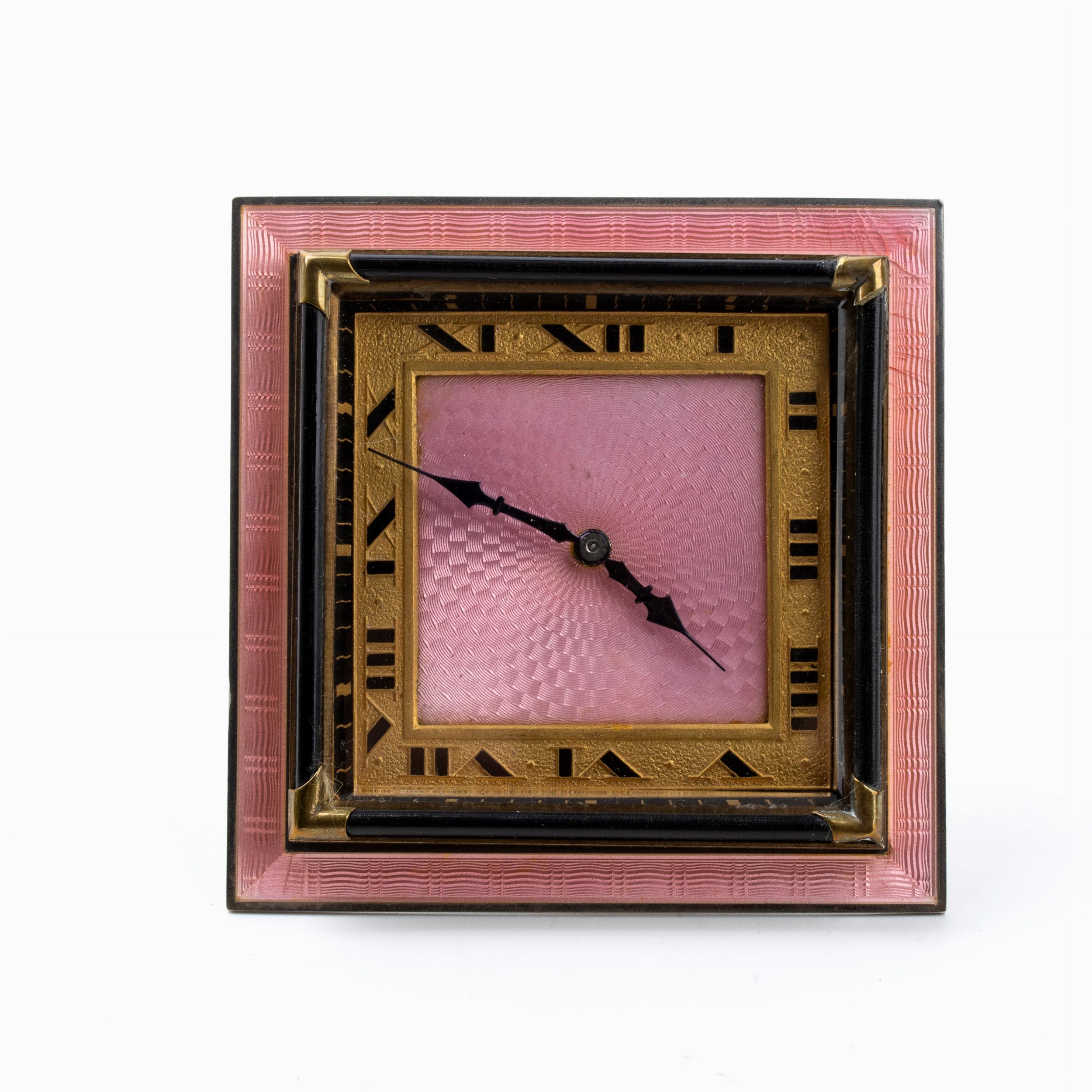 Altezza x larghezza x profonditŕ: 8,3 x 8,3 x 1,8 cm. Peso: 249 gr. Anni '20 - '30 Cassa quadrata in metallo dorato con smalti guilloché nei toni del rosa, quadrante con lunetta dorata, numeri romani e sfere nere. Sul cavalletto la firma 'Tiffany', sul lato la scritta 'Brevete'. Tiffany & Co. è stata fondata nel 1837 da Charles Lewis Tiffany e John B. Young a New York City. Inizialmente un emporio di articoli di cartoleria e oggetti di lusso, presto divenne rinomata per i suoi gioielli di lusso e l'artigianato di alta qualità. Il marchio è iconico per le sue distintive scatole blu e si è affermato come simbolo di eleganza e sofisticazione in tutto il mondo. Classificazione dello stato di conservazione: **** buono. La cassa dell’orologio è in un buono stato di conservazione con le normali usure e difetti commensurati all’epoca e all’uso nel tempo. Il movimento dell’orologio è attualmente funzionante ma potrebbe necessitare di una verifica tecnica.
