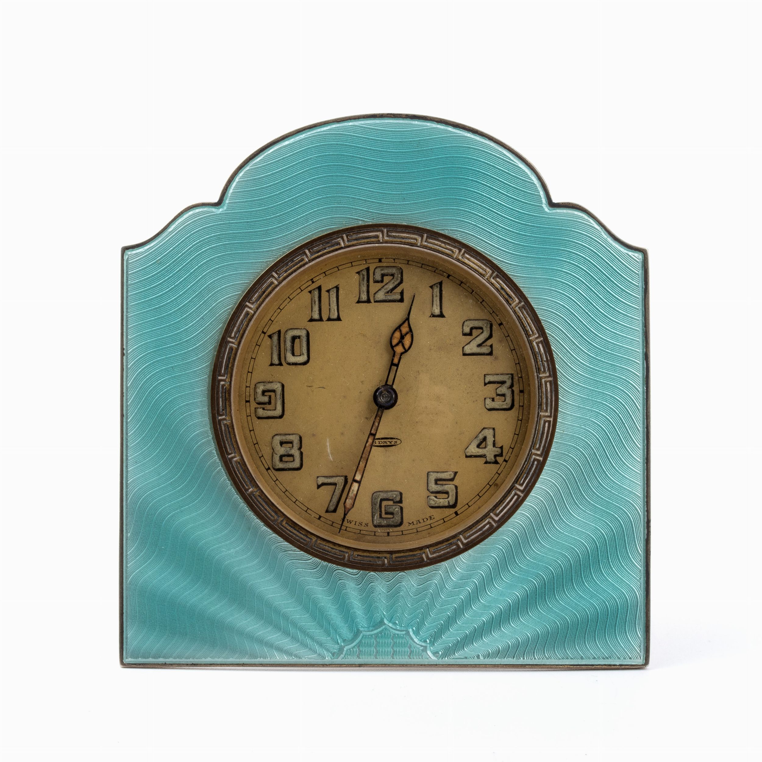 Birmingham, 1929 Cassa in argento 925/1000 e smalti guilloché nei toni del verde, quadrante dorato con numeri arabi e sfere luminescenti riportante le iscrizioni '8 Days - Swiss made'. Punzonato con la serie completa di marchi Birmingham 1929-1930, argentiere Beddoes & Co. Beddoes & Co. è stata fondata nel 1826 a Birmingham, Inghilterra. Conosciuta per la sua argenteria di alta qualità e artigianato, l'azienda è stata un'importante argentiera durante il XIX e l'inizio del XX secolo. È riconosciuta per il suo contributo all'industria dell'argento, in particolare durante il periodo della sua attività. Classificazione dello stato di conservazione: **** buono. La cassa dell’orologio è in un buono stato di conservazione con le normali usure e difetti commensurati all’epoca e all’uso nel tempo. Il movimento dell’orologio è attualmente funzionante ma potrebbe necessitare di una verifica tecnica.