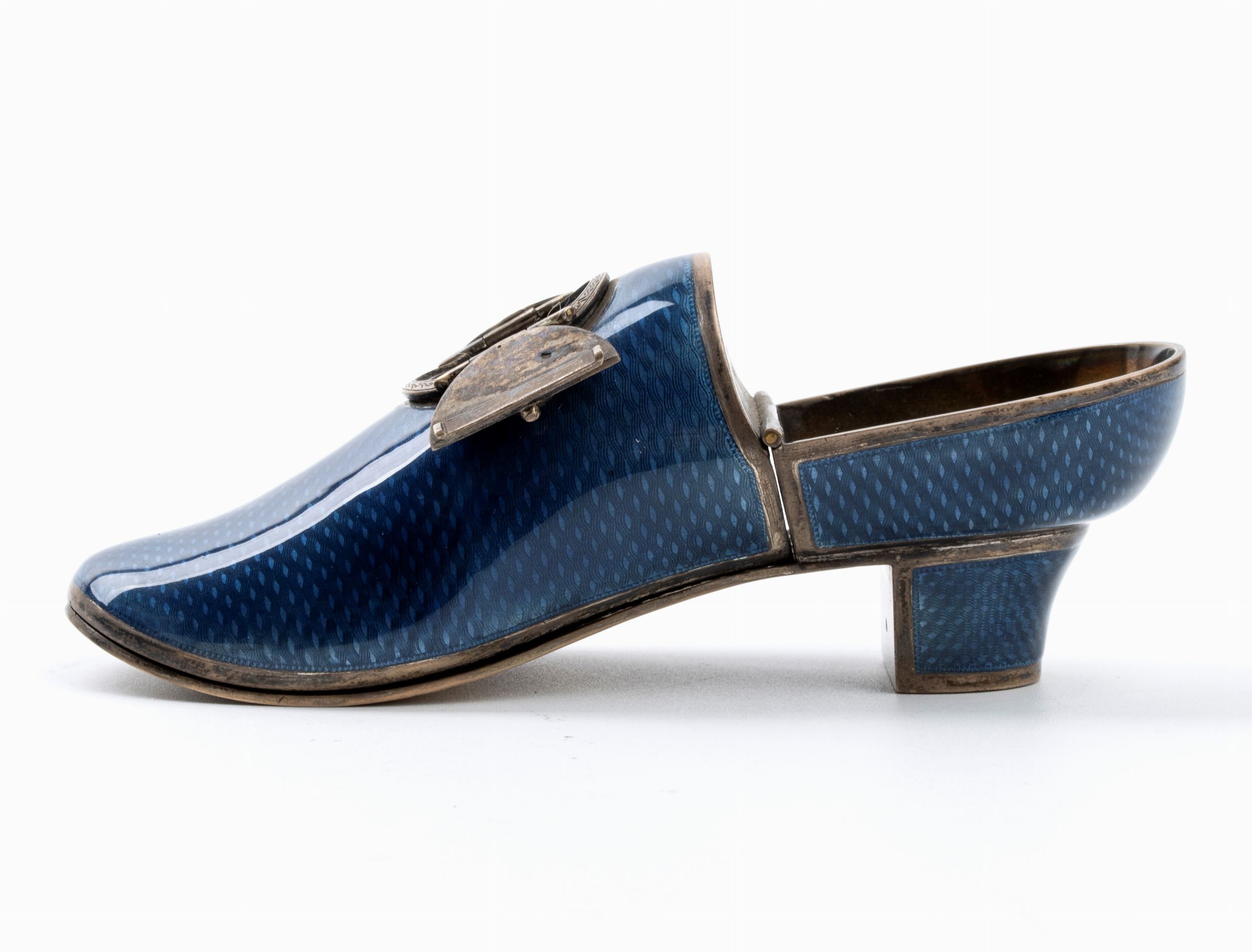 Parigi, anni '20 - '30 Cassa a forma di scarpa in argento e smalti guilloché nei toni del blu; parte superiore con due sportellini a celare il quadrante in smalto bianco con numeri arabi e sfere nere. Rimessa delle ore e carica a chiave. Punzonato nella parte sottostante con il marchio della 'Testa di cinghiale', piccola garanzia per gli oggetti in argento, in uso in Francia a partire dal 1838 e con il marchio dell'argentiere parigino Gérain Amond in losanga, rappresentato da una stella a cinque punte tra le iniziali A G. Nella parte esterna l'iscrizione 'Kendall - 17 Rue de la Paix - Paris'. Kendall è stata fondata nel 1820 a Parigi, Francia. L'azienda era nota per i suoi orologi di lusso e gioielli di alta qualità, servendo una clientela prestigiosa. Aveva sede al 17 di Rue de la Paix, un indirizzo rinomato per orologi e gioielli di alta gamma a Parigi. Classificazione dello stato di conservazione: **** buono. La cassa dell’orologio è in un buono stato di conservazione con le normali usure e difetti commensurati all’epoca e all’uso nel tempo. Il movimento dell’orologio è attualmente funzionante ma potrebbe necessitare di una verifica tecnica.