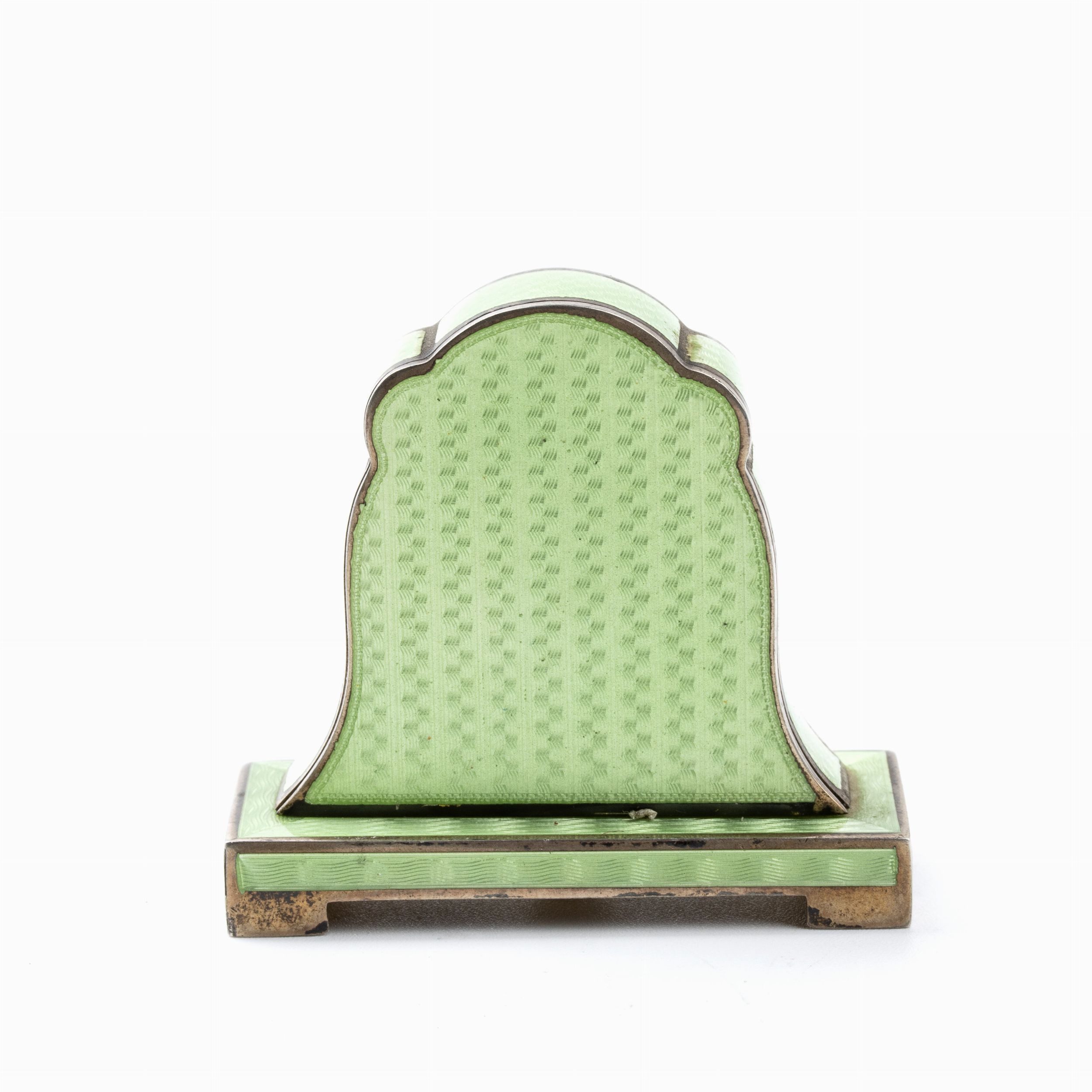 Altezza x larghezza x profonditŕ: 4,3 x 4,7 x 2 cm. Peso: 63,3 gr. Svizzera, anni '20 - '30 Cassa sagomata in argento 935/1000 e smalti guilloché nei toni del verde, quadrante in smalto bianco con numeri arabi e sfere nere riportante l'iscrizione 'Lusina'. Punzonato nella parte sottostante 'Sterling silver - swiss - 0,935 - Argent dore - F.B.E. Geneve'. Lusina era un'azienda orologiera svizzera fondata nel 1865 a Ginevra. Il marchio era noto per la produzione di orologi di alta qualità e di lusso. Era riconosciuto per la sua artigianalità e precisione nella fine del XIX secolo e nei primi del XX secolo. Classificazione dello stato di conservazione: **** buono. La cassa dell’orologio è in un buono stato di conservazione con le normali usure e difetti commensurati all’epoca e all’uso nel tempo. Il movimento dell’orologio è attualmente funzionante ma potrebbe necessitare di una verifica tecnica.