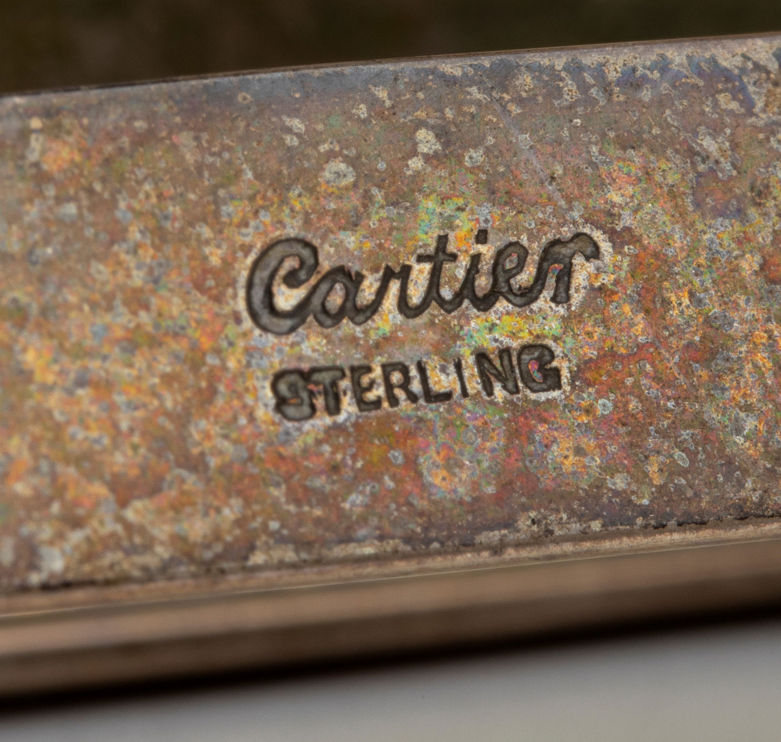 Altezza x larghezza x profonditŕ: 9,5 x 9,6 x 1,7 cm. Peso: 230 gr. Anni '20 - '30 Cassa in argento 925/1000 e smalti guilloché nei toni del blu, quadrante bianco con numeri arabi e sfere luminescenti riportante l'iscrizione ' Cartier Longines'. Punzonato 'Cartier - Sterling'. Cartier è stata fondata nel 1847 da Louis-François Cartier a Parigi, Francia. Rinomata per i suoi gioielli di lusso, orologi e accessori, Cartier è celebrata per la sua maestria artigianale e i suoi design iconici. Il marchio ha una storia prestigiosa ed è spesso definito il 'gioielliere dei re'. Classificazione dello stato di conservazione: *** discreto. La cassa dell’orologio è in un buono stato di conservazione con le normali usure e difetti commensurati all’epoca e all’uso nel tempo ad eccezione di alcuni difetti agli smalti. Il movimento dell’orologio è attualmente funzionante ma potrebbe necessitare di una verifica tecnica.