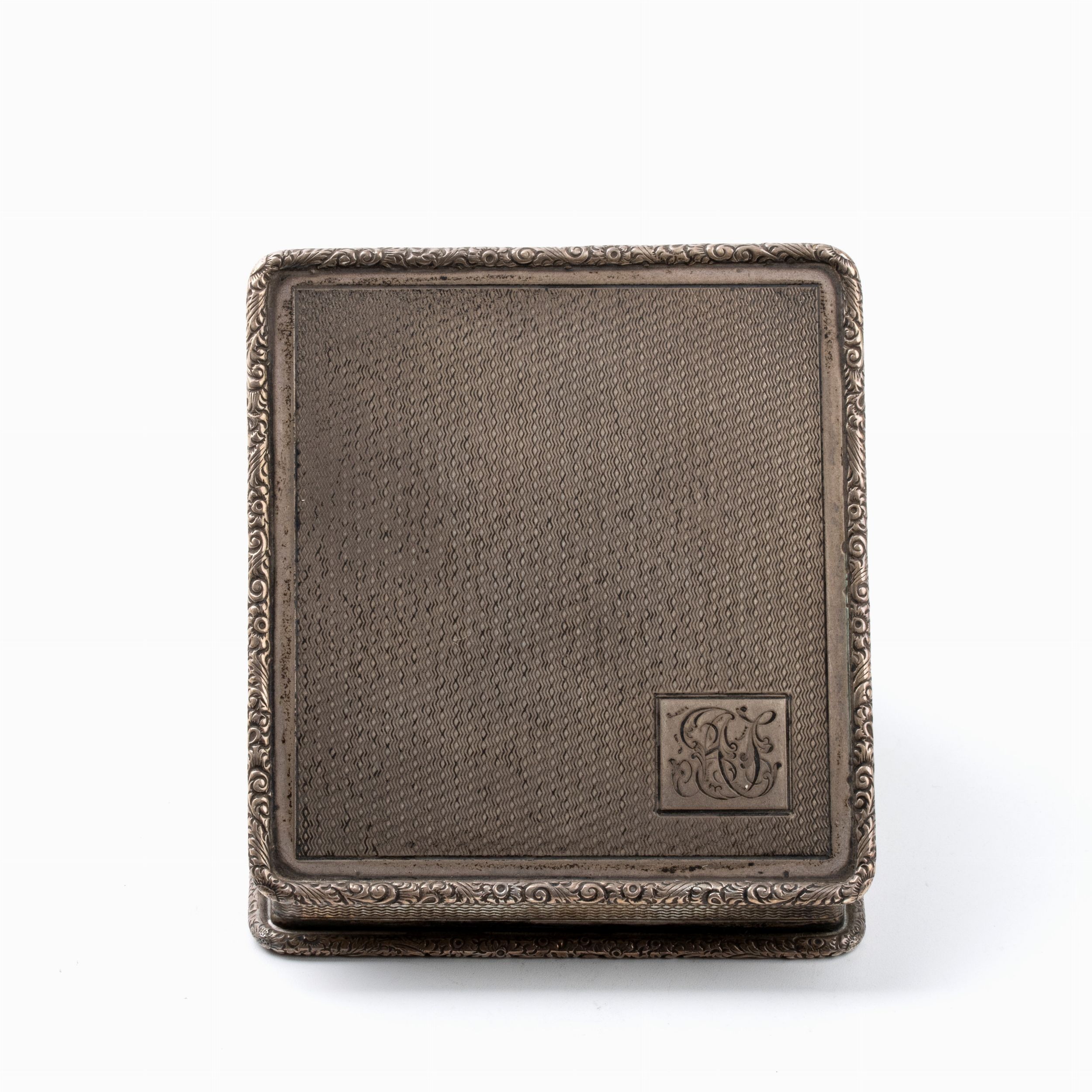 Altezza x larghezza x profonditŕ: 8,9 x 8,3 x 2 cm. Peso: 315 gr. Birmingham, 1927 Di forma rettangolare con coperchio incernierato a decorazione meccanizzata con bordi floreali. Orologio con quadrante dorato, numeri arabi e sfere luminescenti riportante le iscrizioni '8 Days - Swiss made'. Cassa in argento 925/1000 punzonato all'interno con la serie completa di marchi Birmingham 1927-1928, argentiere William Base & Sons. William Base & Sons era una ditta britannica di argentieri fondata nel 1882 a Birmingham, Inghilterra. L'azienda era specializzata in argenteria di alta qualità ed era nota per la sua maestria artigianale. William Base & Sons operò principalmente alla fine del XIX e all'inizio del XX secolo. Classificazione dello stato di conservazione: **** buono. La cassa dell’orologio è in un buono stato di conservazione con le normali usure e difetti commensurati all’epoca e all’uso nel tempo. Il movimento dell’orologio necessita di una verifica tecnica.