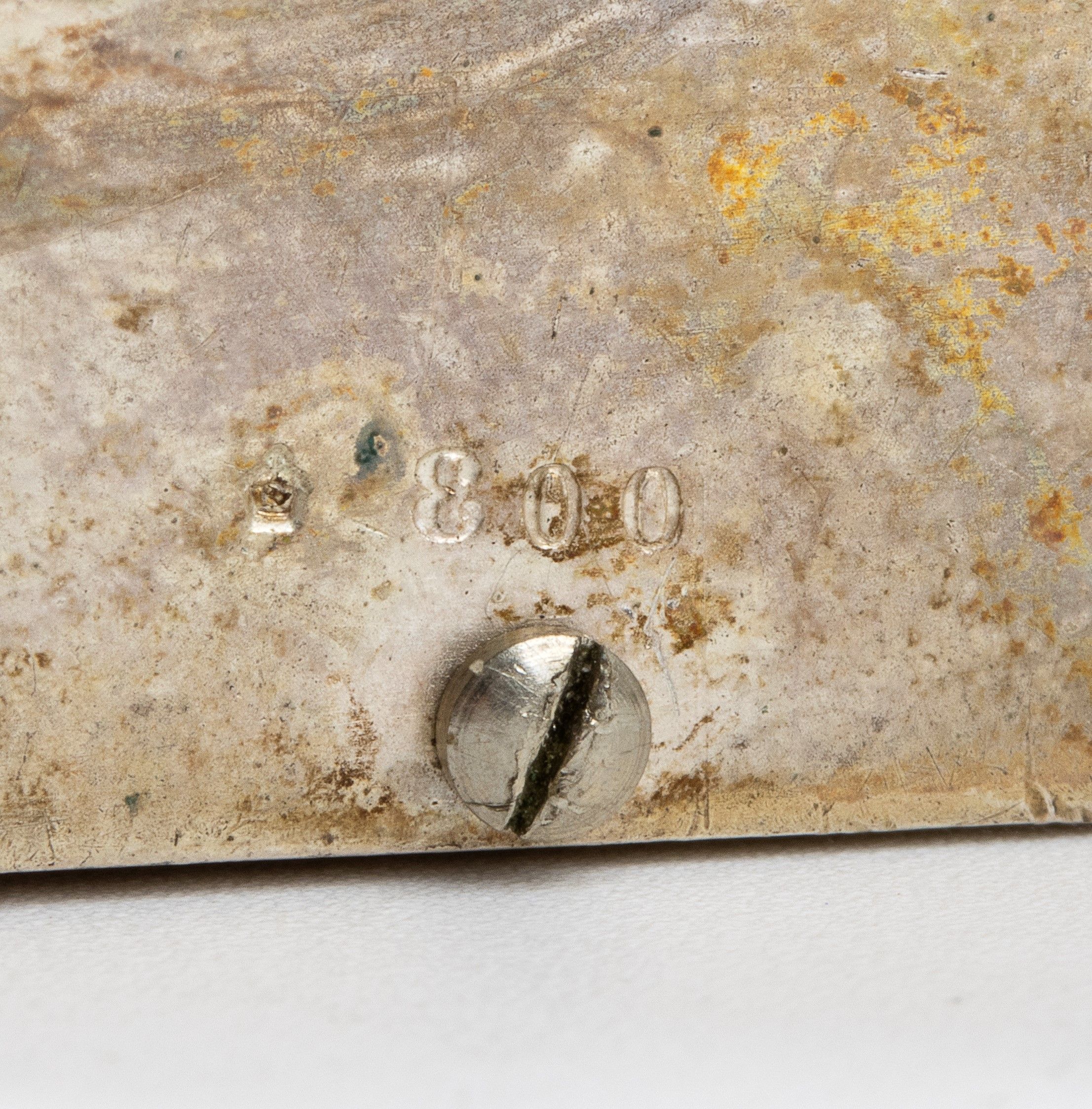Altezza x larghezza x profonditŕ: 4,7 x 3,2 x 2,3 cm. Peso: 70 gr. Anni '20 - '30 Cassa a 'cappuccina' in argento 800/1000 e smalti guilloché nei toni del prugna, quadrante dorato con numeri romani entro lunette dorate con numeri arabi dorati e sfere nere. Rimessa delle ore e carica a chiave. Punzonato nella parte sottostante '800' e con i marchi in uso in Germania dopo il 1888. Classificazione dello stato di conservazione: **** buono. La cassa dell’orologio è in un buono stato di conservazione con le normali usure e difetti commensurati all’epoca e all’uso nel tempo; minori difetti agli smalti. Il movimento dell’orologio necessita di una verifica tecnica.