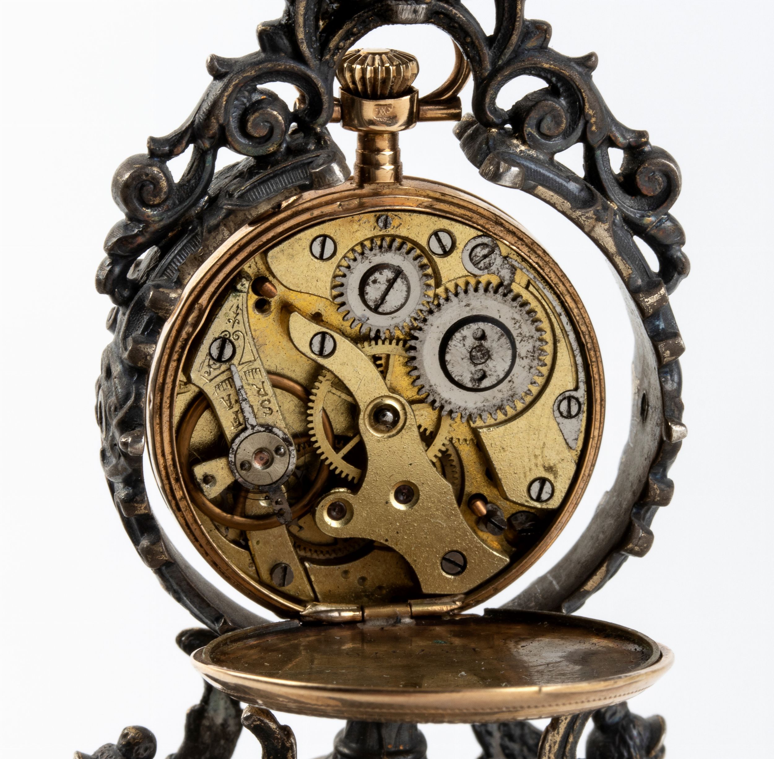 Accompagnato da orologio da tasca con cassa in oro 14ct, carica a remontoir e movimento a cilindre, quadrante parzialmente dorato con numeri arabi