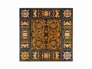 coppia di tavelle da soffitto, tempera su tavola, senza cornice, cm 40 x 41,3 e cm 41 x 40 (restauri)