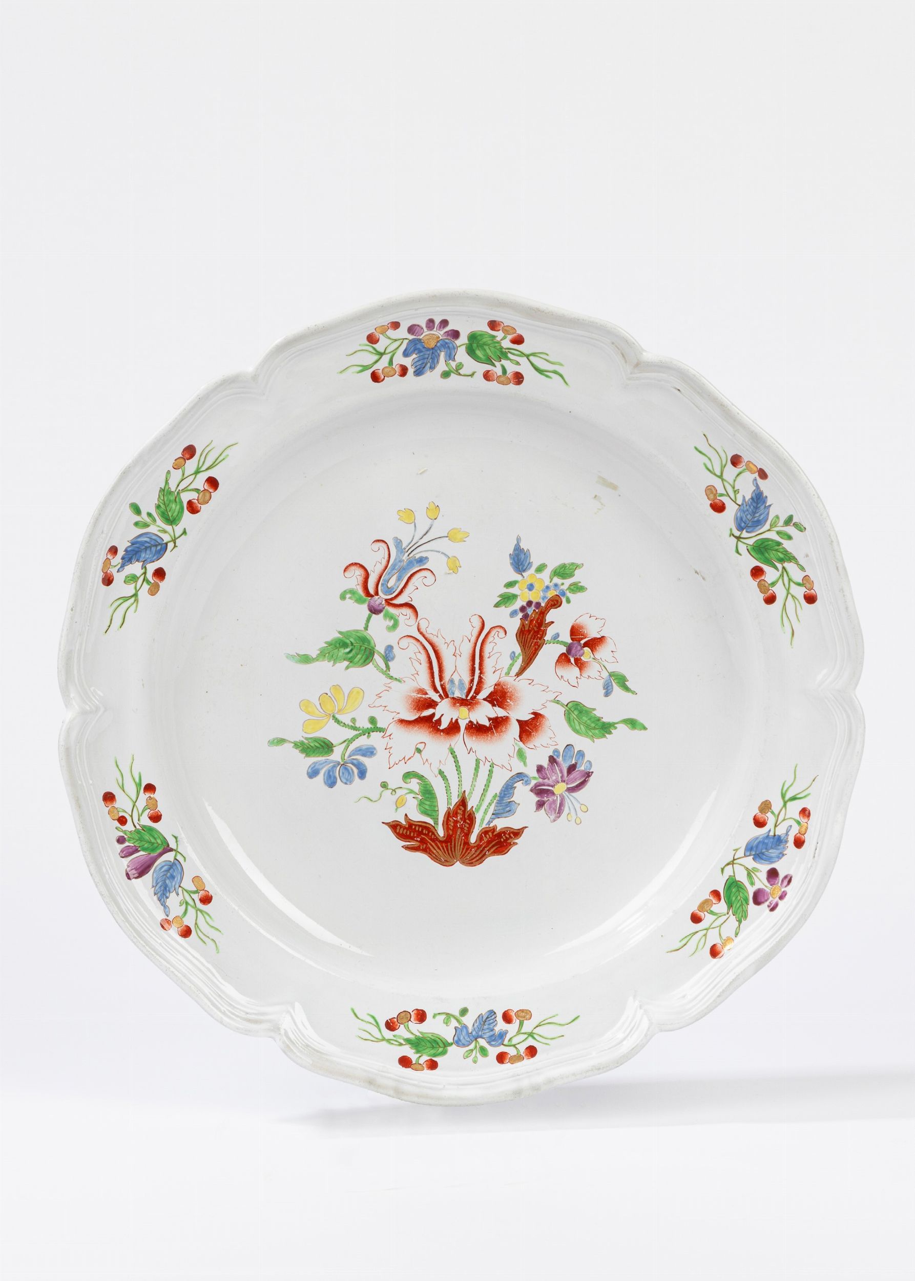 manifattura Ginori a Doccia, circa 1770 profilo polilobato, il cavetto decorato con motivo 'al tulipano', la falda a motivi vegetali