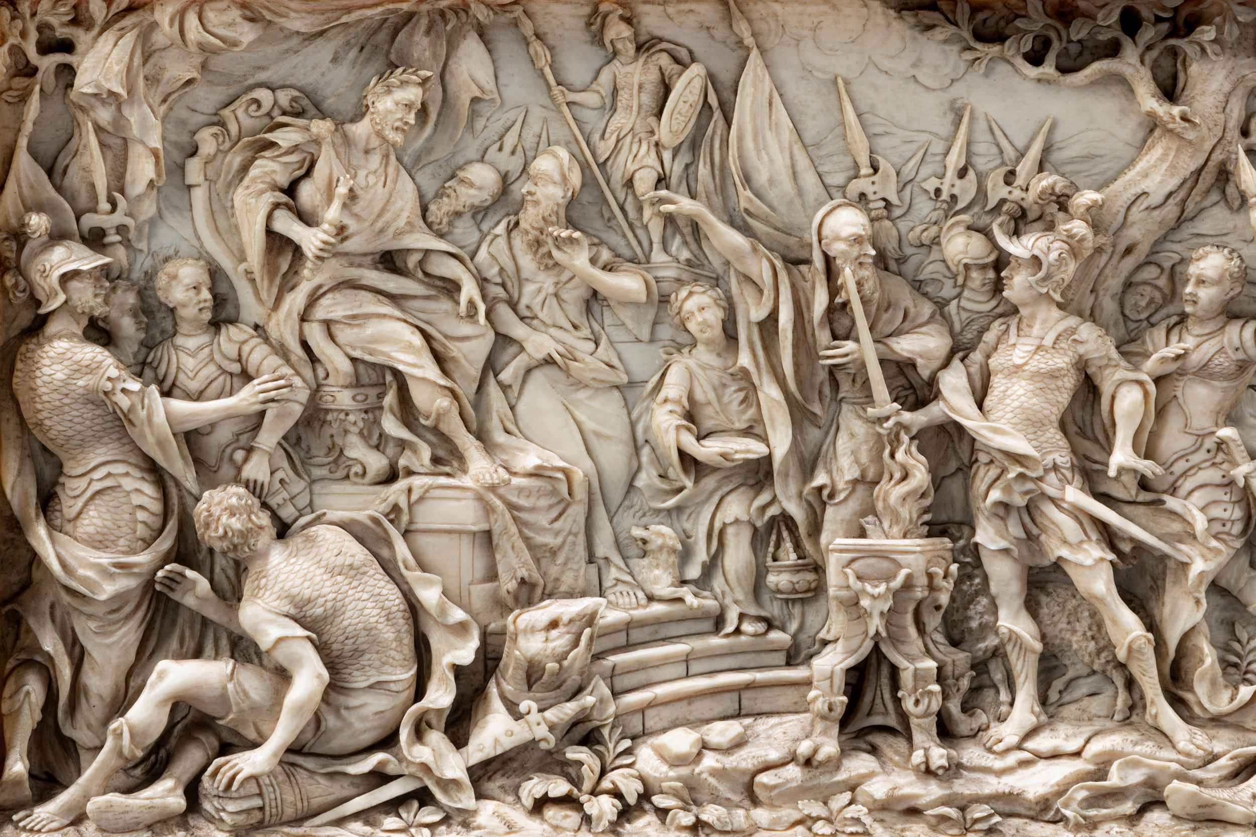 ¤Placca in avorio finemente intagliata raffigurante il Sacrificio di Muzio Scevo [..]