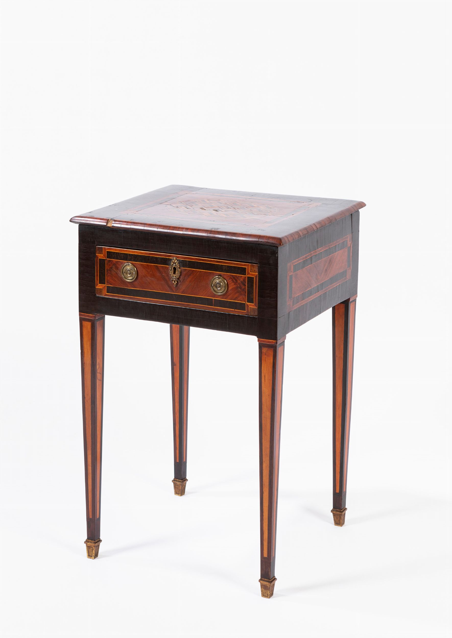 Piemonte, 1780 il piano con intarsio geometrico, un tiretto alla fascia, gambe troncopiramidali