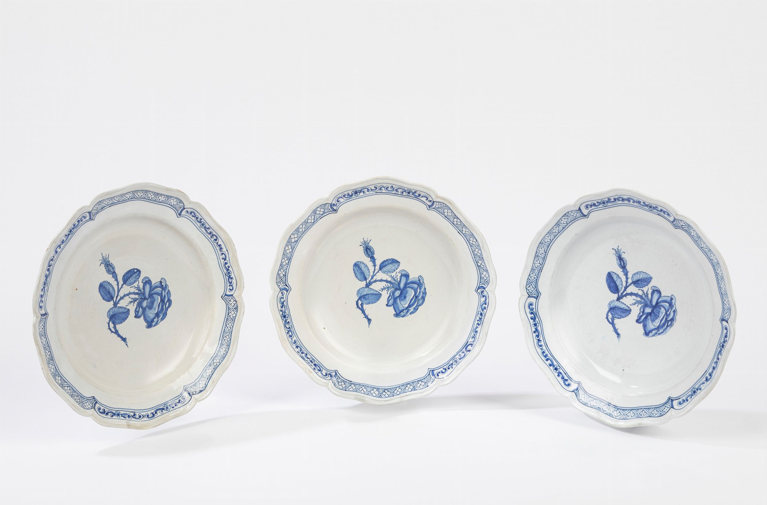 Tre piatti in ceramica decorata in monocromia blu. Manifattura Ginori a Doccia