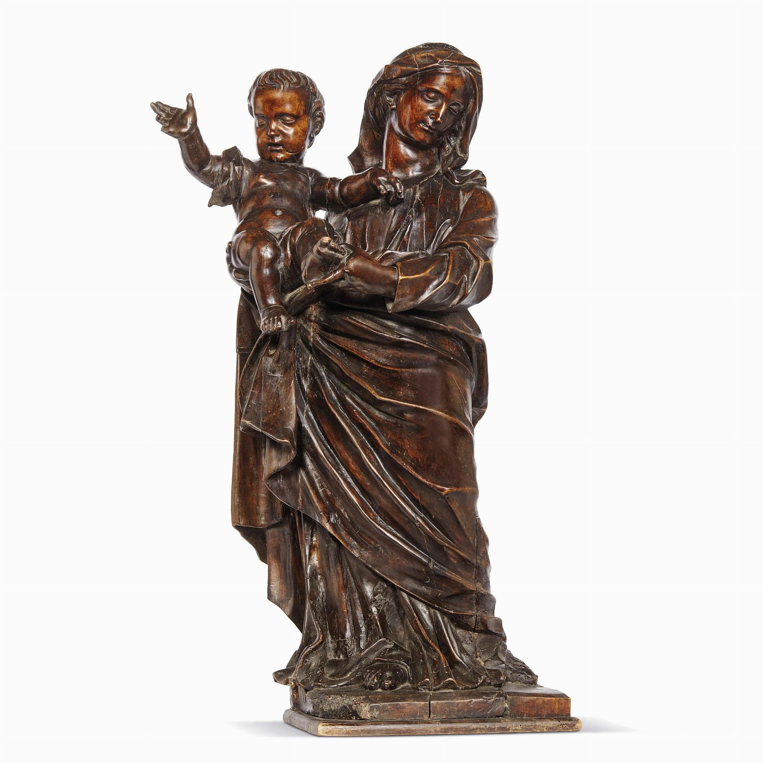 Venetian school, 17th century, Madonna with Child, carved and patinated wood