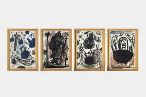 ciascuno 24x16 circa tecnica mista Lotto di quattro disegni realizzati in occasione del libro Gunter Damisch. [..]