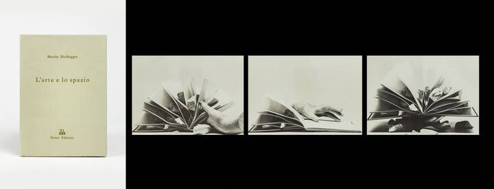 24x34 catalogo con quattro stampe fuori testo es. 116 Questa edizione sullo scritto di Martin Heidegger L'arte e lo spazio è stata impressa in 250 esemplari dei quali i primi 100 firmati da Giulio Paolini che ha interpretato l'opera in quattro immagini fotografate da Paolo Pellion. L'edizione è stata curata da Franco Mello. Noire Editore Torino
