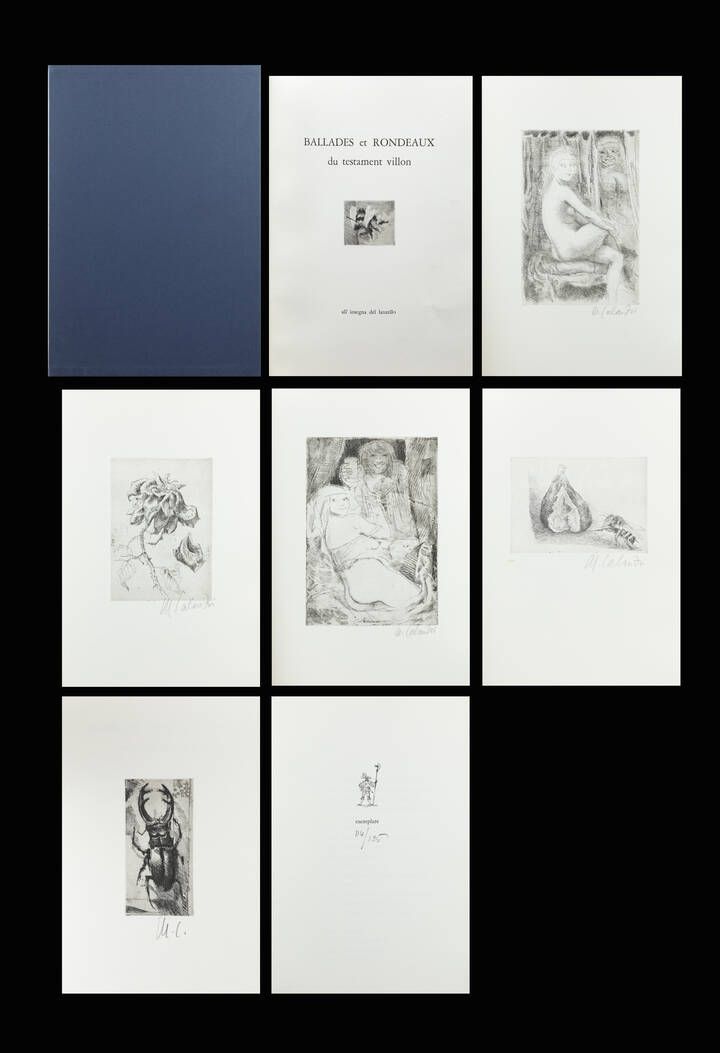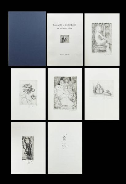 misure varie incisione es. 114/125 Quattro incisioni firmate in basso a destra a matita sul foglio; una siglata in basso a destra; una non firmata Cartella di 6 incisioni Editore All'Insegna del Lanzello Castigliole d'Asti (AT) Piccoli difetti