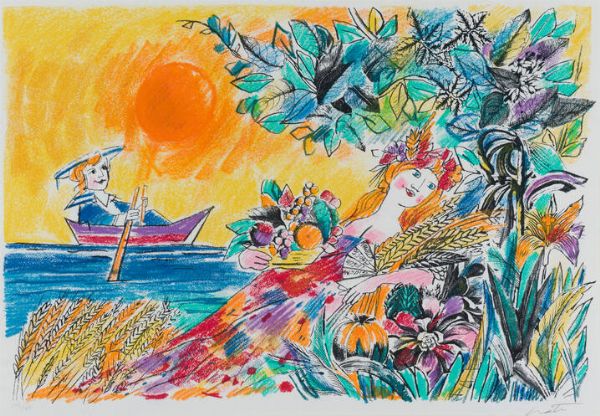 34 5x49 5 foglio 31 5x47 5 serigrafia es. 219/400 Opera firmata in basso a destra e numerata in basso a sinistra (a matita sul foglio) Serigrafia realizzata nei laboratori della ESSEDI EDIZIONI s.n.c. di Sandro Cortesogno