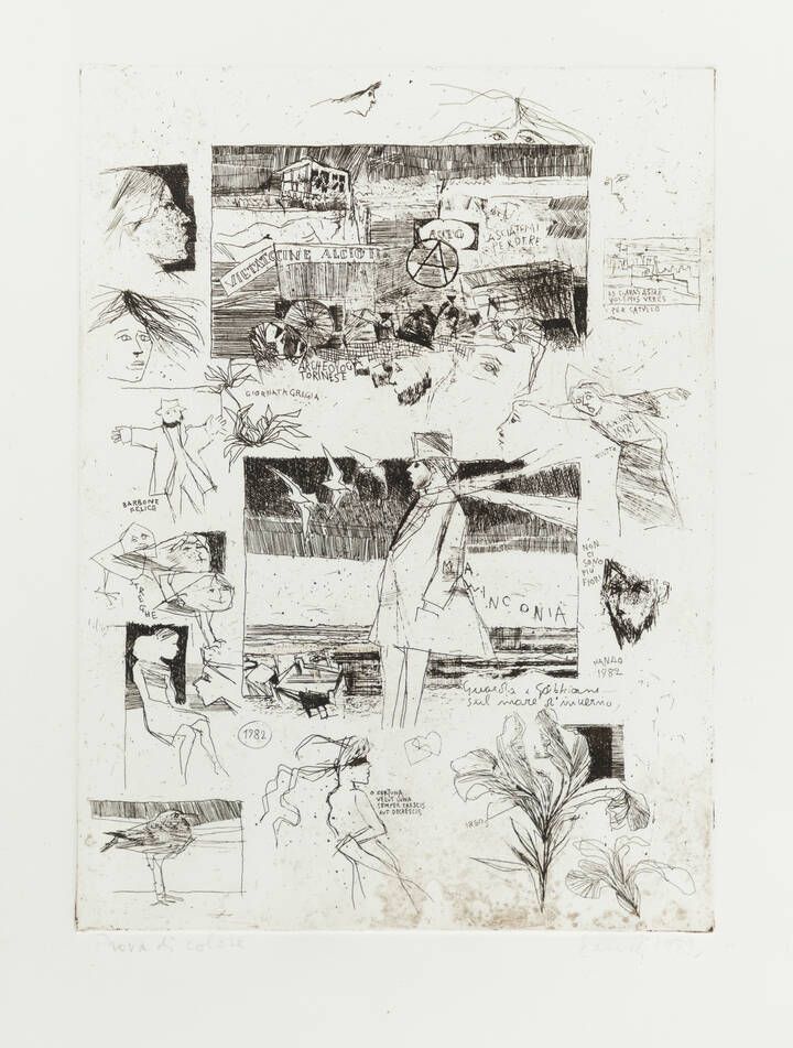 50x35 foglio 32x23 3 acquaforte prova colore Opera firmata e datata in basso a destra e iscritta prova di colore in basso a sinistra (a matita sul foglio)