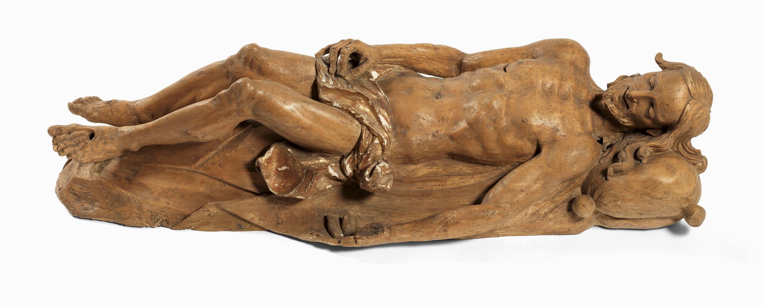 Scultura in legno intagliato e dorato, cm 41x141x34