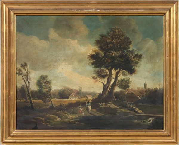 Paesaggio con figure e case sullo sfondo