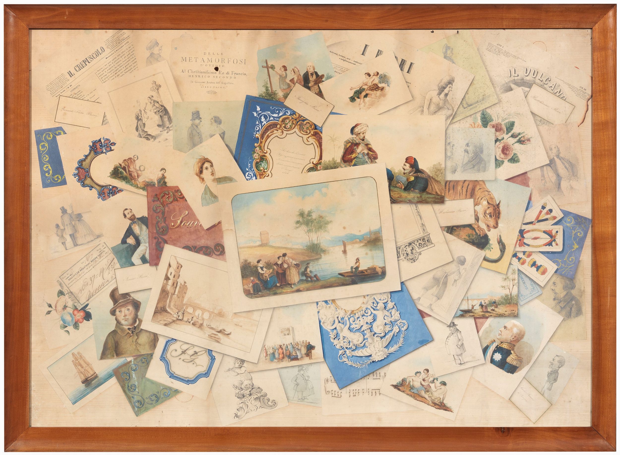 Collage con parti a litografia, disegno a grafite e acquerello su carta, cm 74,5x104,5
