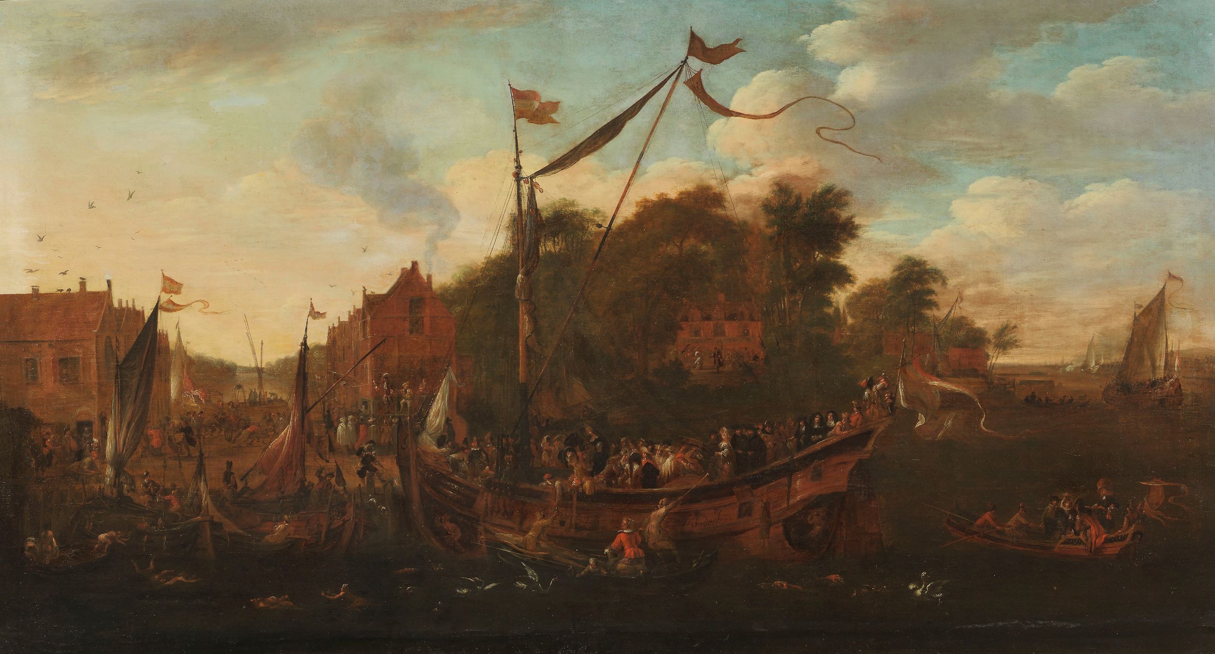 Hendrik Van Minderhout : Veduta di porto  - Asta Maioliche, Sculture e Dipinti Antichi - Associazione Nazionale - Case d'Asta italiane