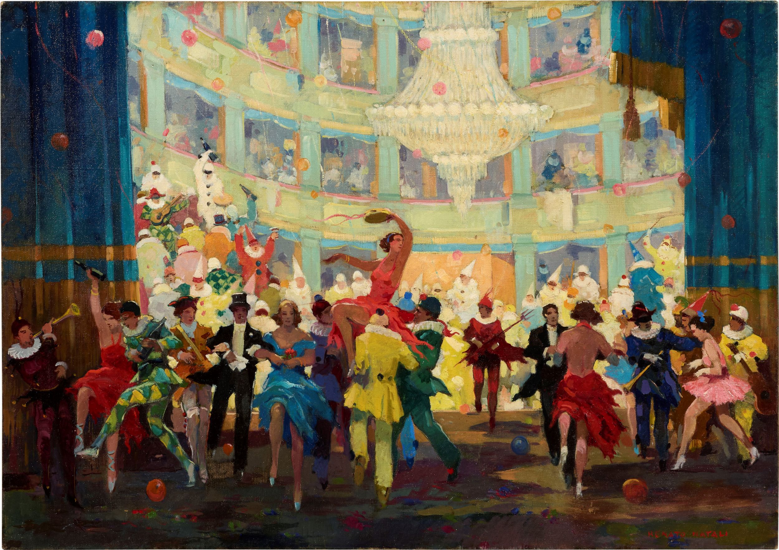 Olio su tela, cm 70x100 Firma in basso a destra: Renato Natali; titolo, firma e luogo al verso sulla tela: La reginetta del Veglione / Renato Natali Livorno: etichetta e quattro timbri Raccolta Ugo Ughi, Livorno; sul telaio: cartiglio con dati dell'opera e n. 92: etichetta Archivio Renato Natali, con n. 74, codice LULDFFNYNSZAEFV, in data 17/07/2024 (con titolo La Reginetta del ballo ).