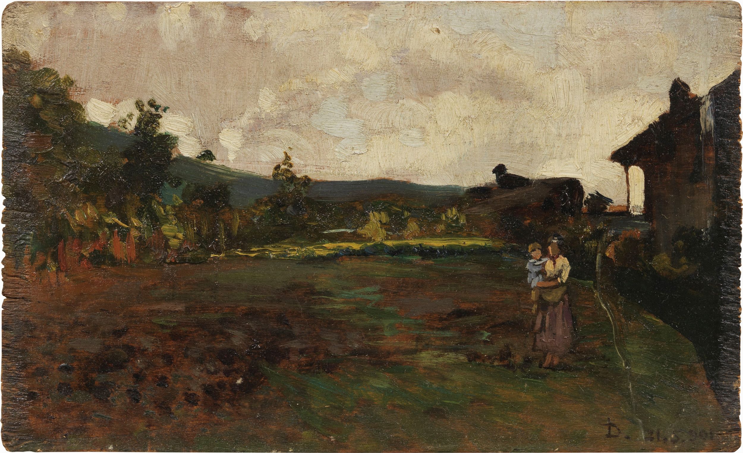 Sigla e data in basso a destra: D. 21.5.901. Al verso: scritta Egregio Pittore / [...] Delleani / Torino 1890: cartiglio e due timbri Galleria Athena.