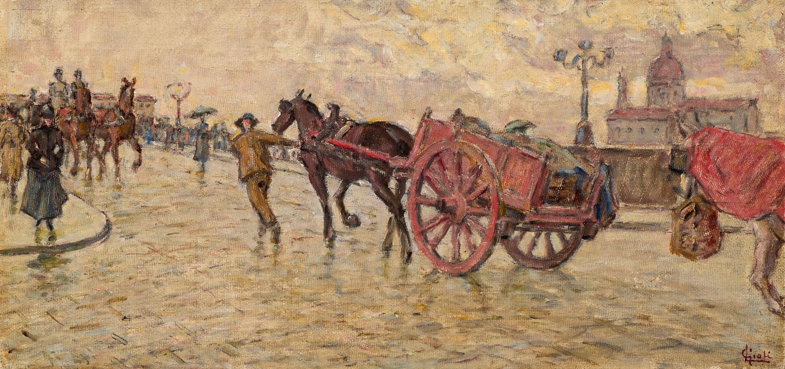 Firma in basso a destra: L Gioli.  Al verso: etichetta Circolo degli Artisti / Casa di Dante / Firenze / Mostra Dall'Otto al Novecento / 4-16 dicembre 1948.