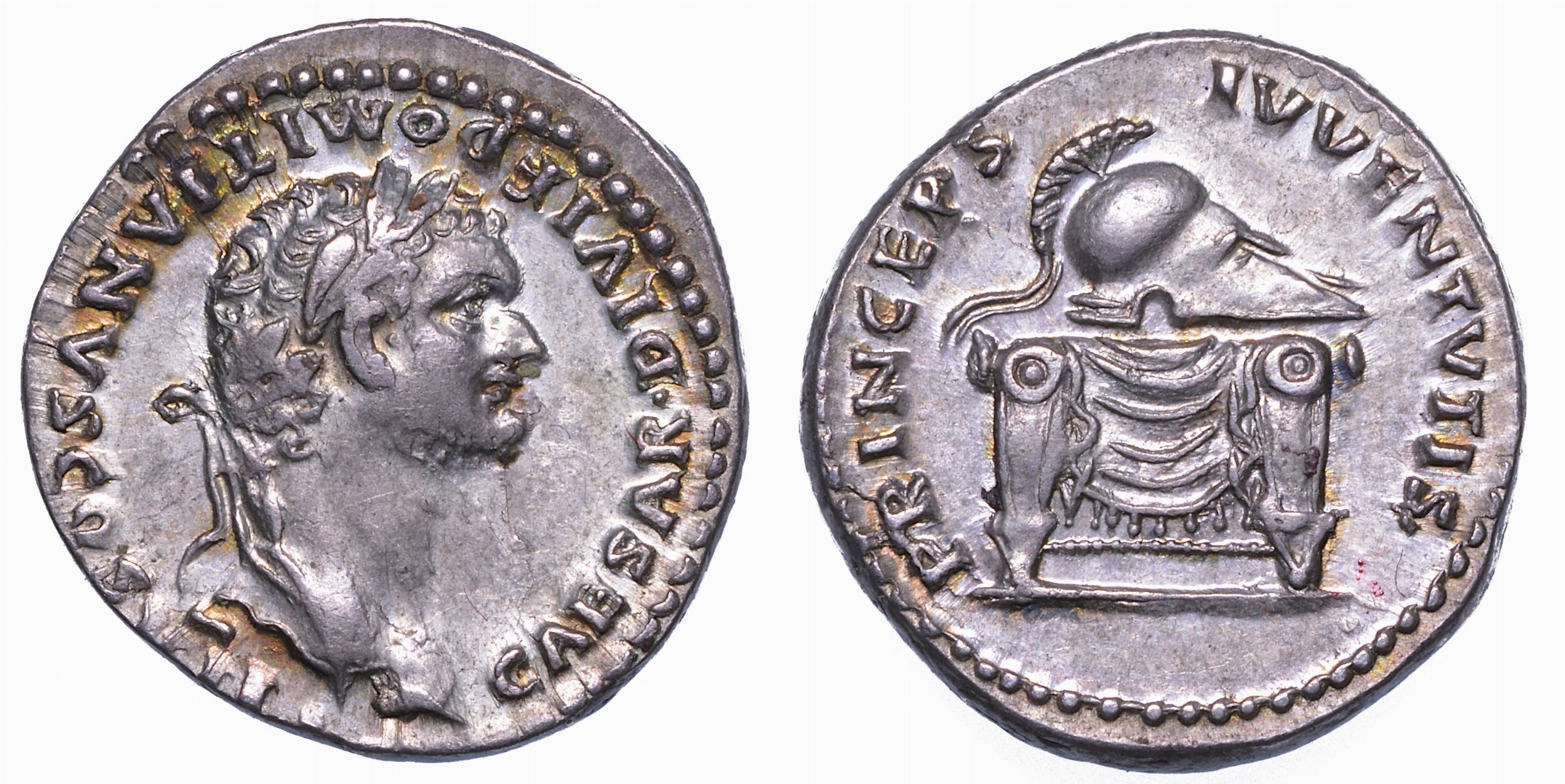 DOMIZIANO (Cesare). Denario, anni 80-81.
