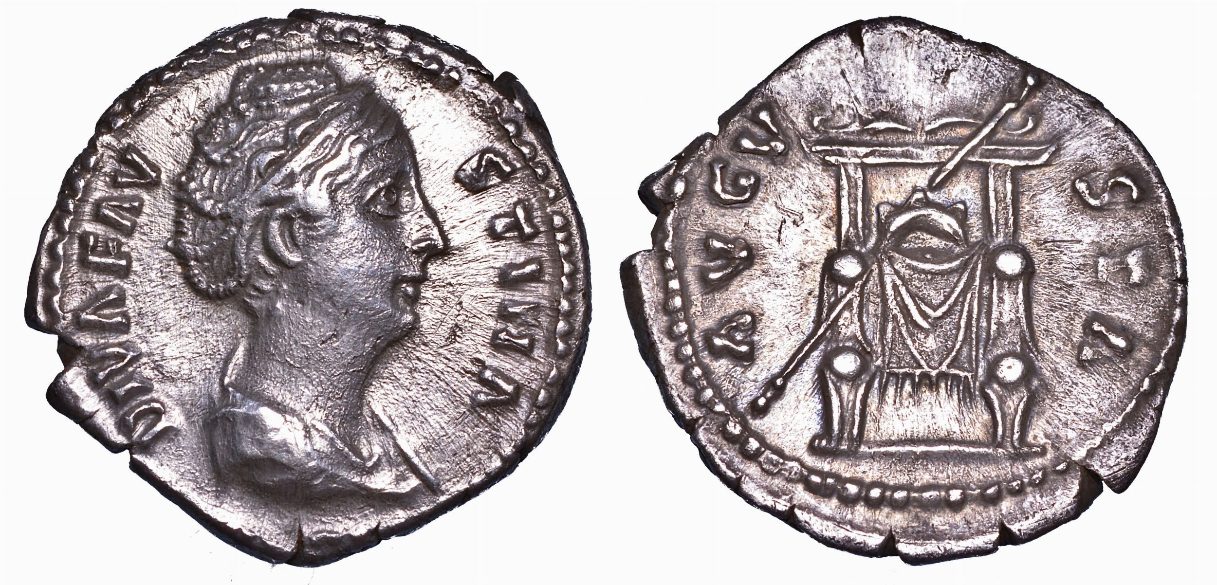 FAUSTINA I (moglie di Antonino Pio), + 140/141. Denario. Consacrazione.