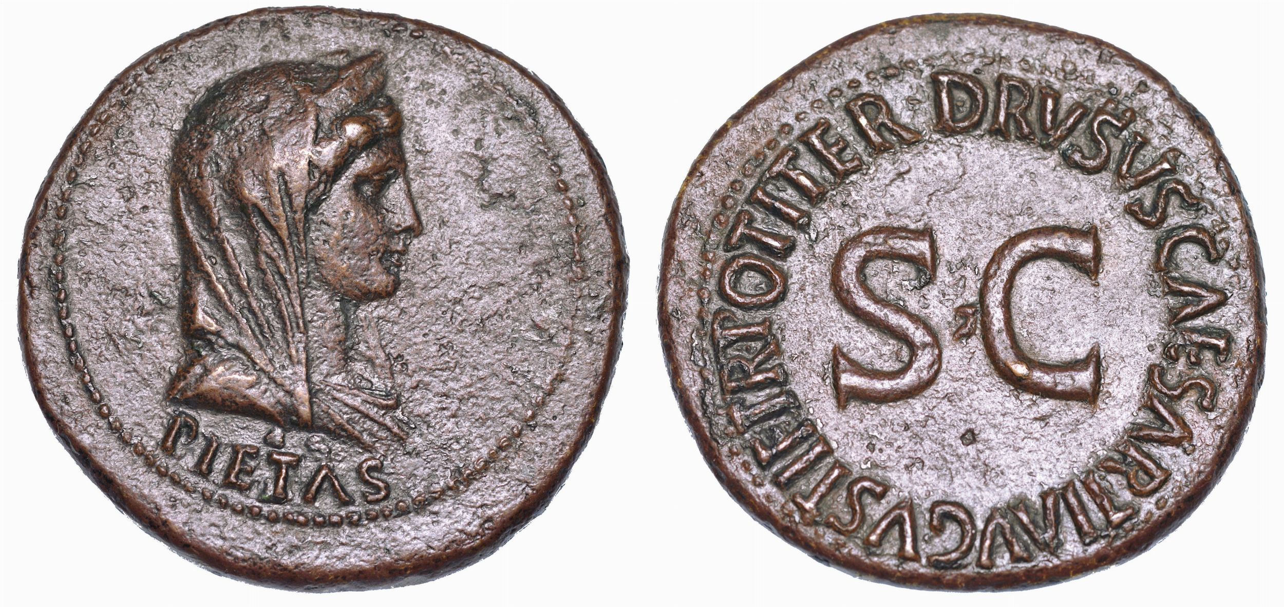 LIVIA (moglie di Augusto). Dupondio, anni 22-23.