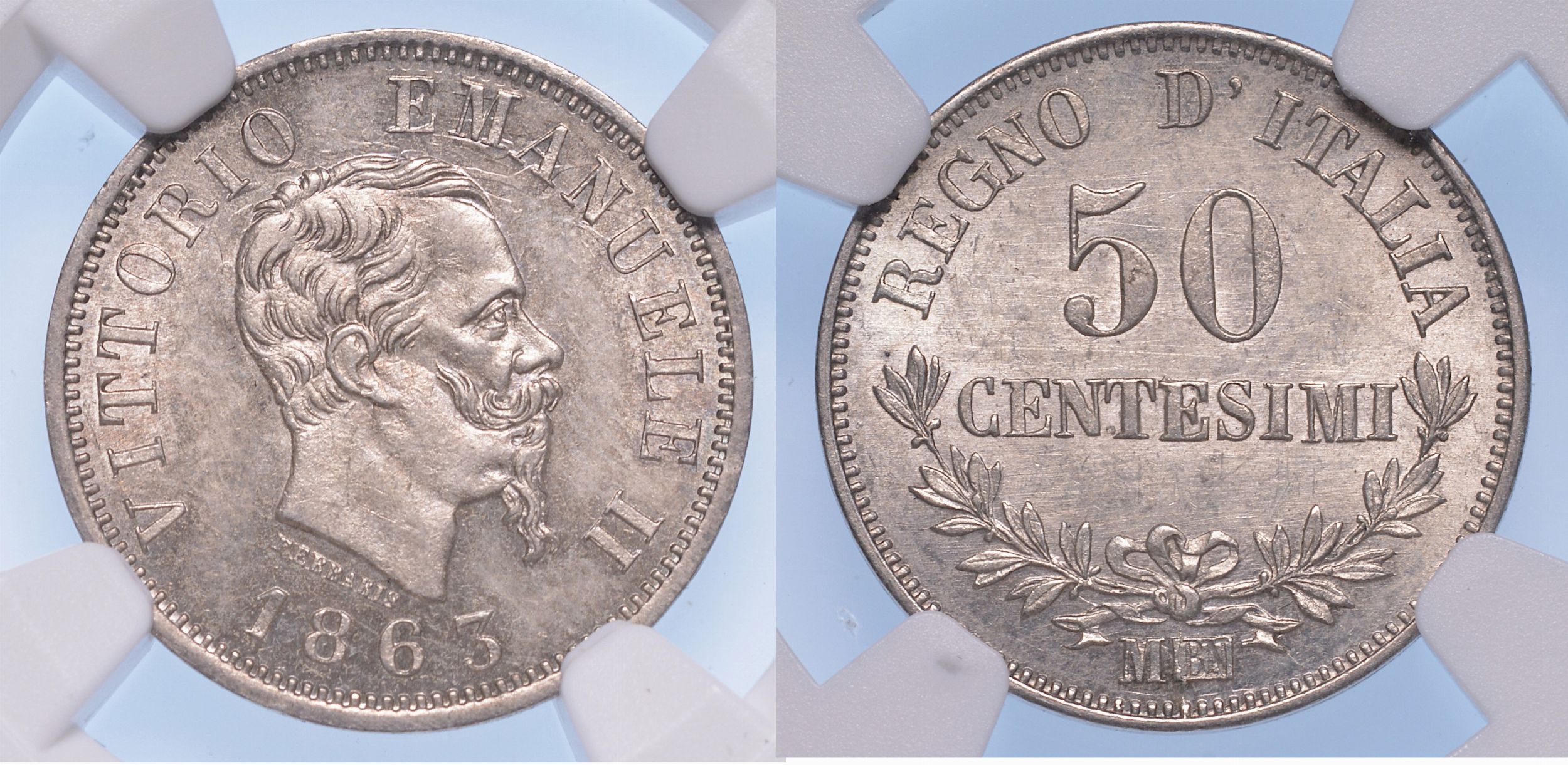 MILANO. VITTORIO EMANUELE II DI SAVOIA, 1861-1878 (RE D’ITALIA). 50 Centesimi 18 [..]