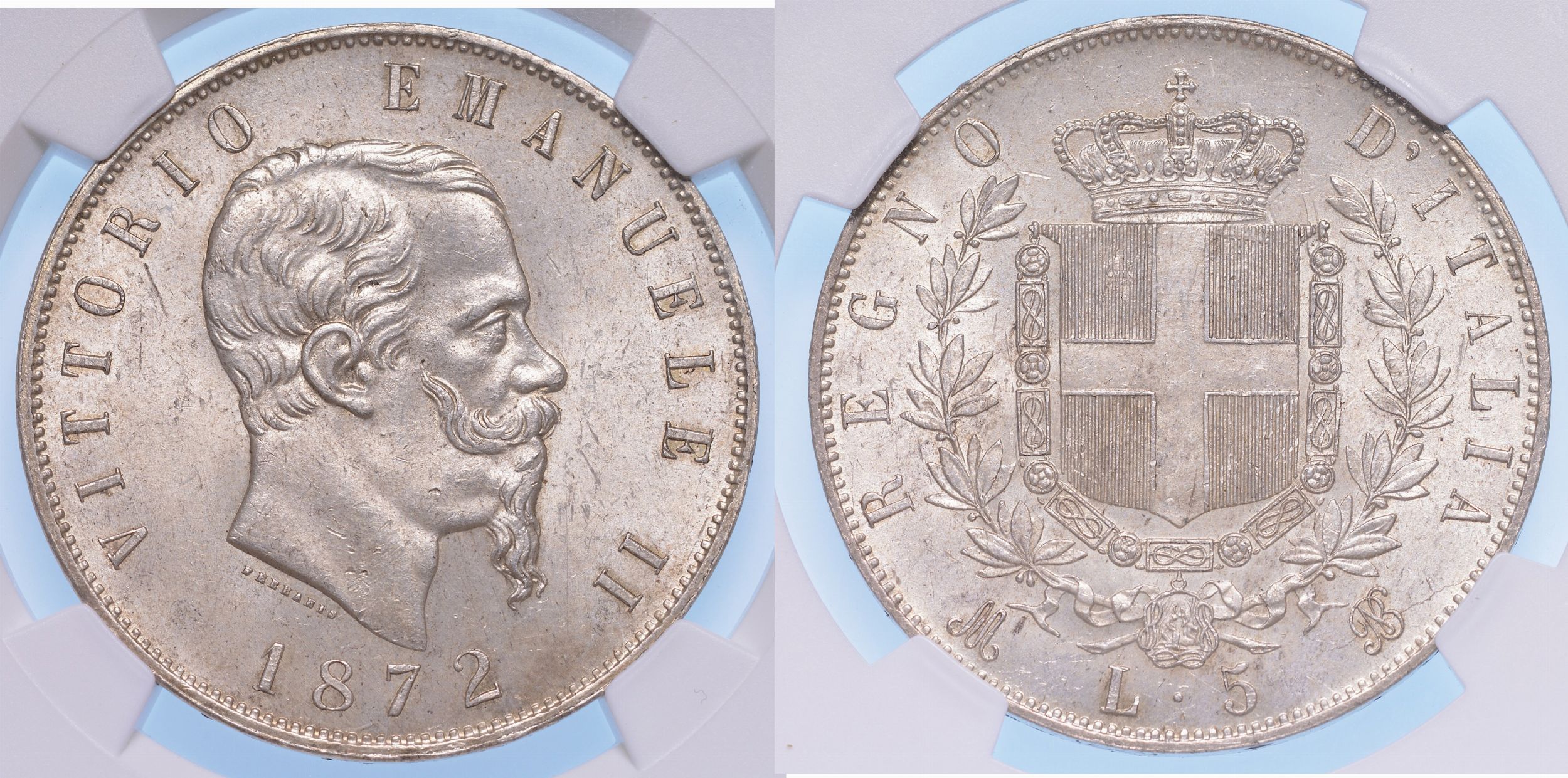 MILANO. VITTORIO EMANUELE II DI SAVOIA, 1861-1878 (RE D’ITALIA). 5 lire 1872.