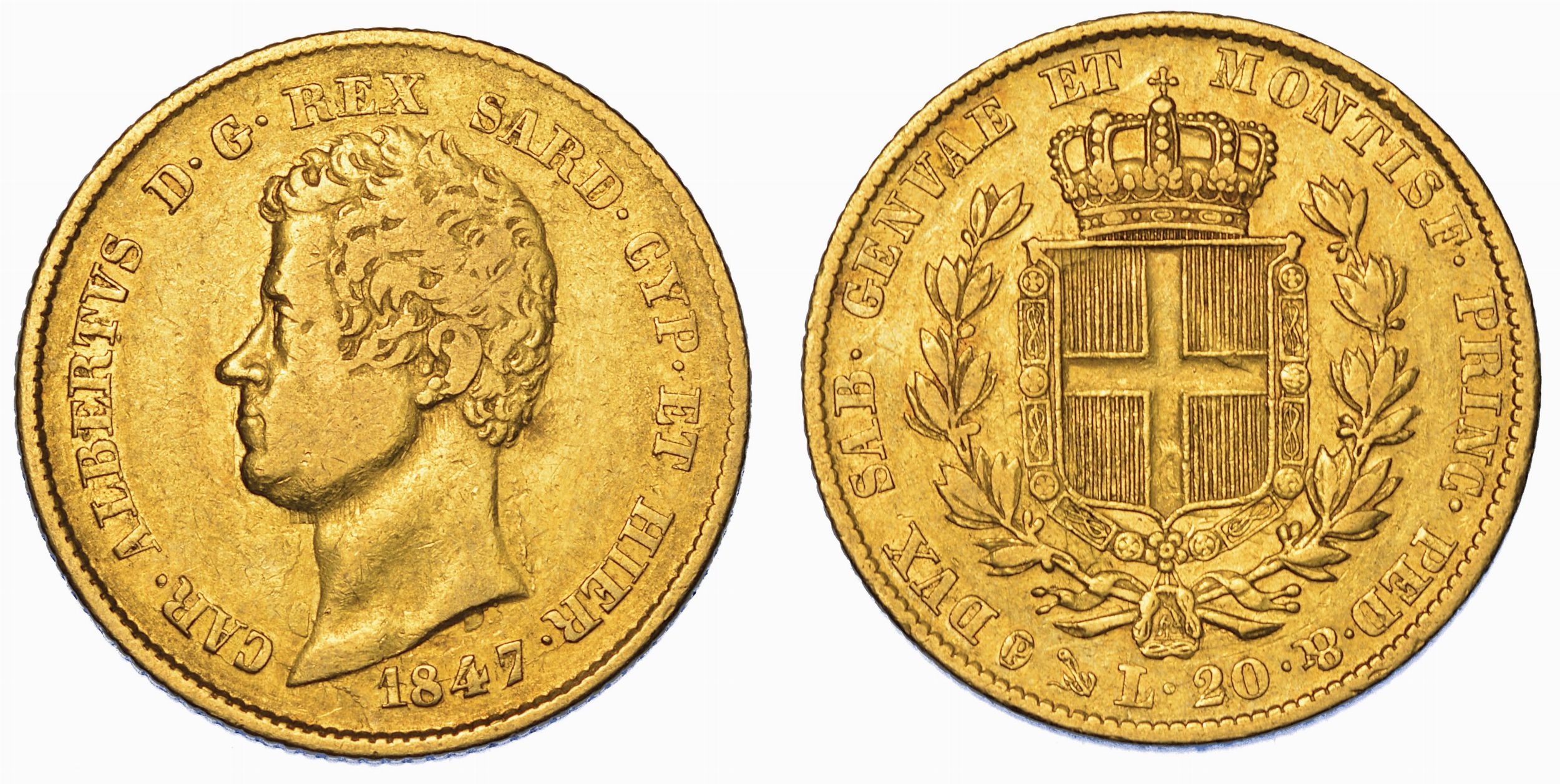 REGNO DI SARDEGNA. CARLO ALBERTO DI SAVOIA, 1831-1849. 20 Lire 1847. Genova.