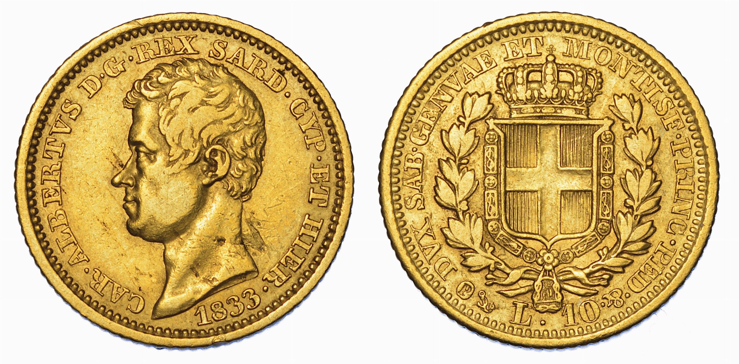 REGNO DI SARDEGNA. CARLO ALBERTO DI SAVOIA, 1831-1849. 10 Lire 1833. Genova.