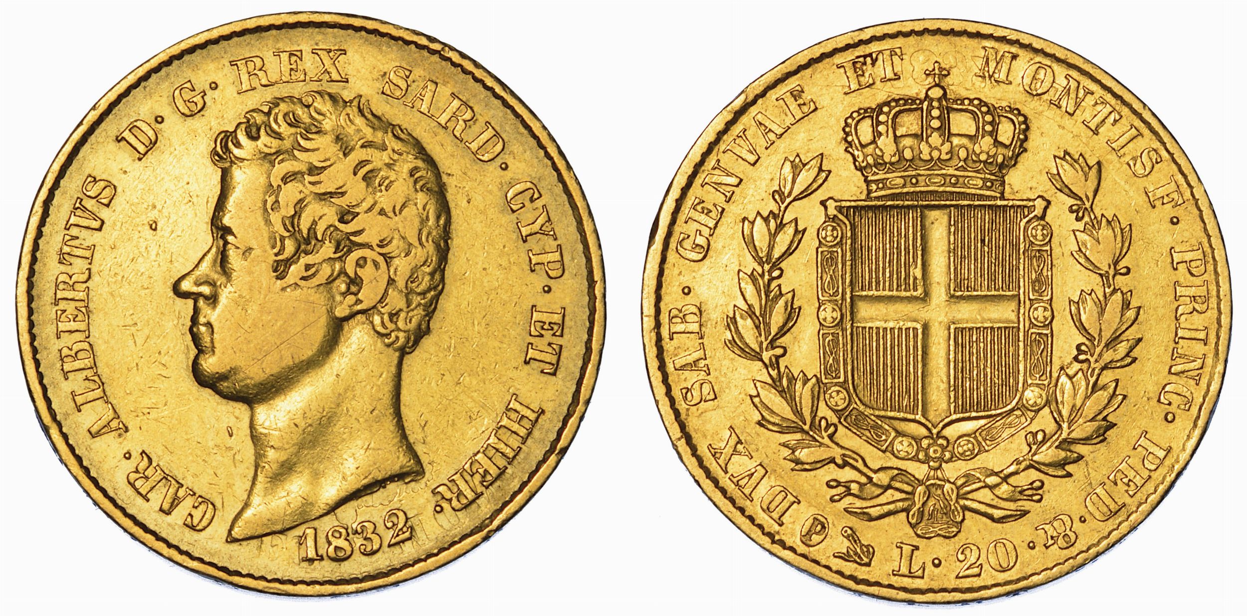 REGNO DI SARDEGNA. CARLO ALBERTO DI SAVOIA, 1831-1849. 20 Lire 1832. Genova.