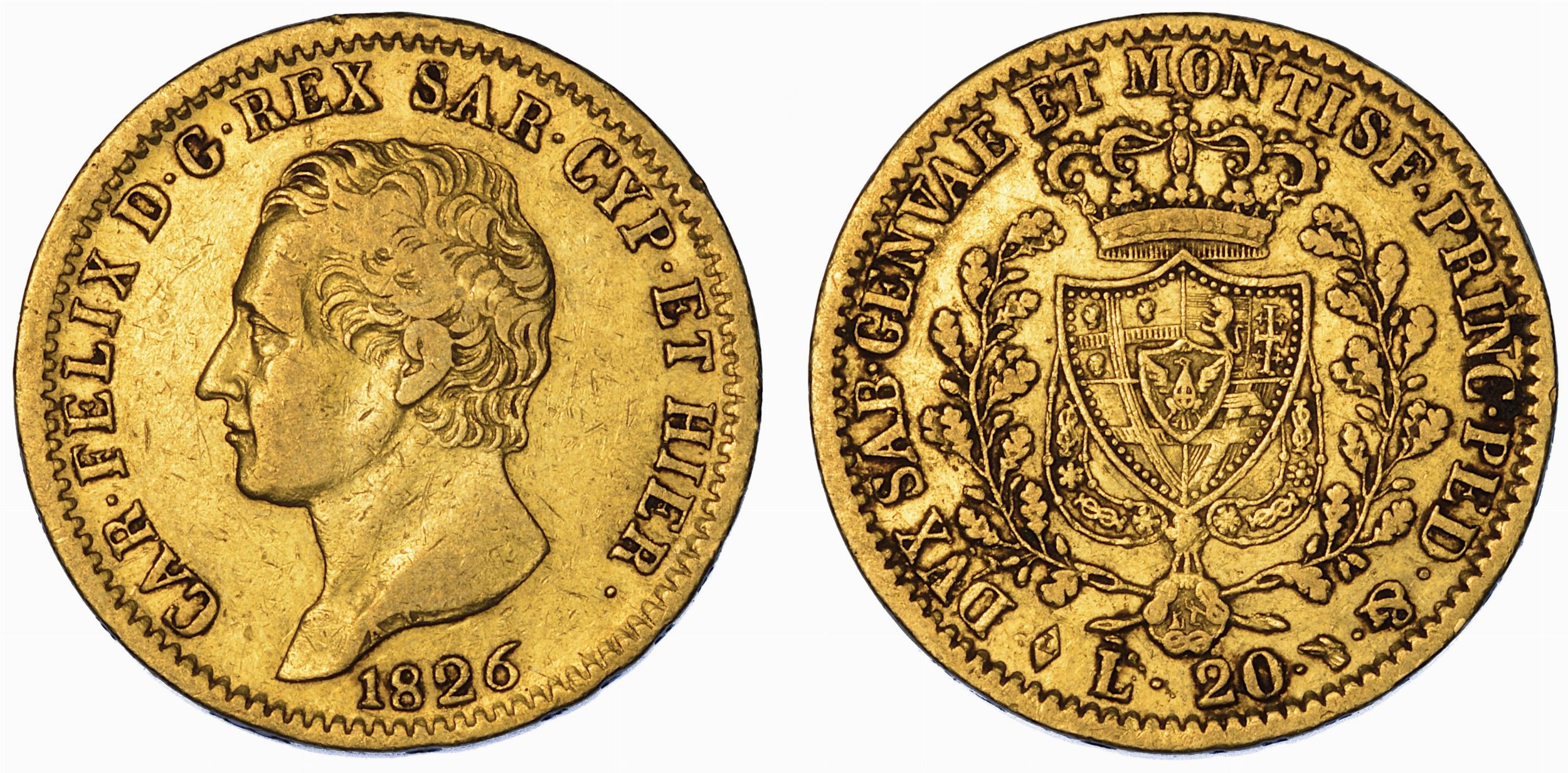 REGNO DI SARDEGNA. CARLO FELICE DI SAVOIA, 1821-1831. 20 Lire 1826. Torino.