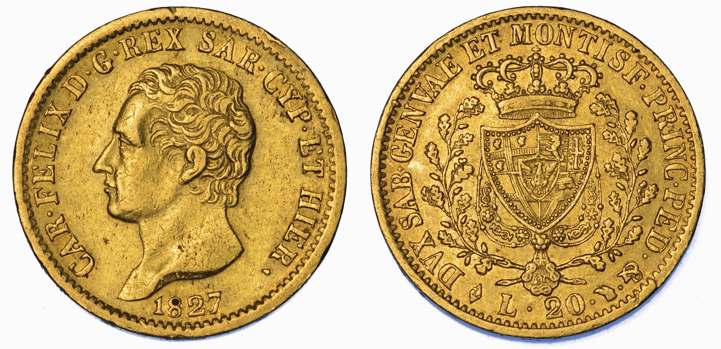 REGNO DI SARDEGNA. CARLO FELICE DI SAVOIA, 1821-1831. 20 Lire 1827. Torino.