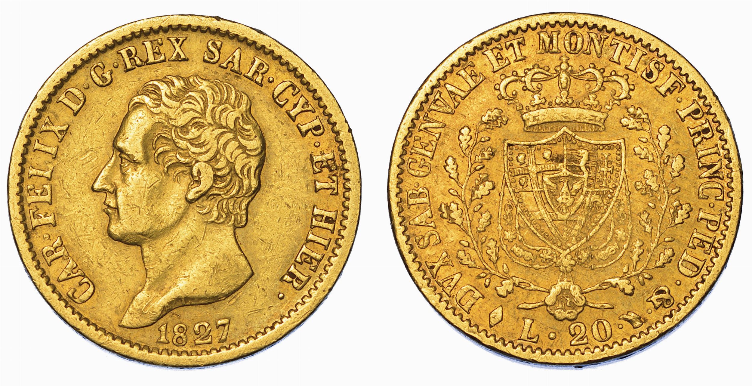 REGNO DI SARDEGNA. CARLO FELICE DI SAVOIA, 1821-1831. 20 Lire 1827. Torino.