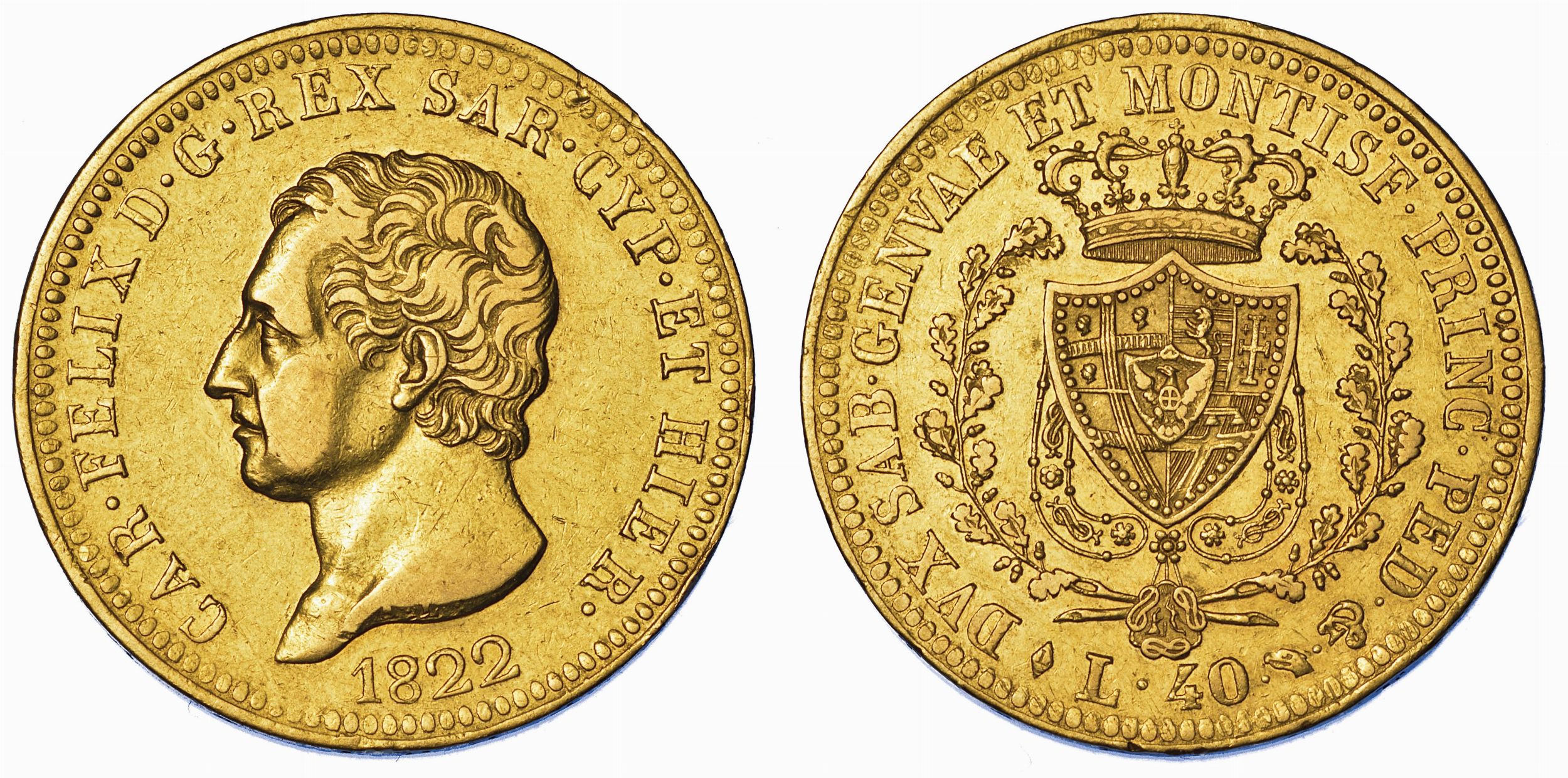 REGNO DI SARDEGNA. CARLO FELICE DI SAVOIA, 1821-1831. 40 Lire 1822. Torino.