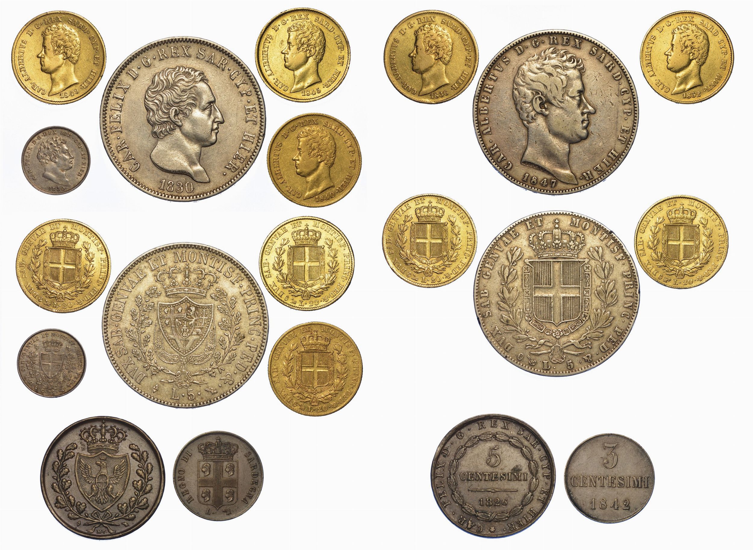 REGNO DI SARDEGNA. Lotto di dieci monete.