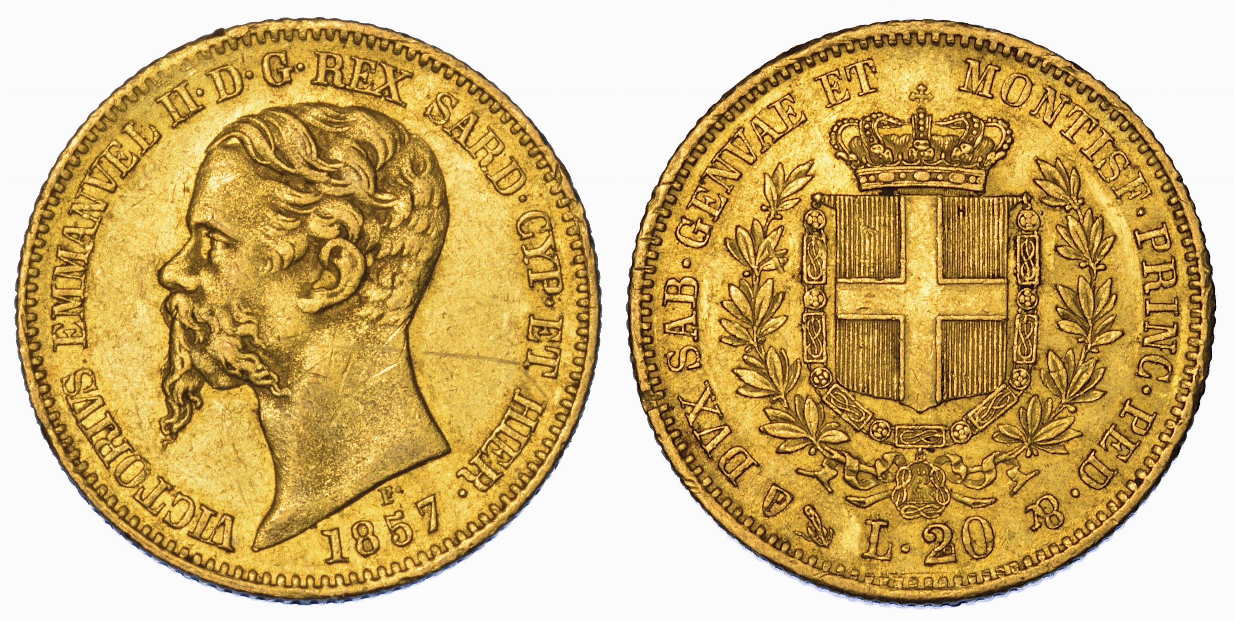REGNO DI SARDEGNA. VITTORIO EMANUELE II DI SAVOIA, 1849-1861. 20 Lire 1857. Geno [..]