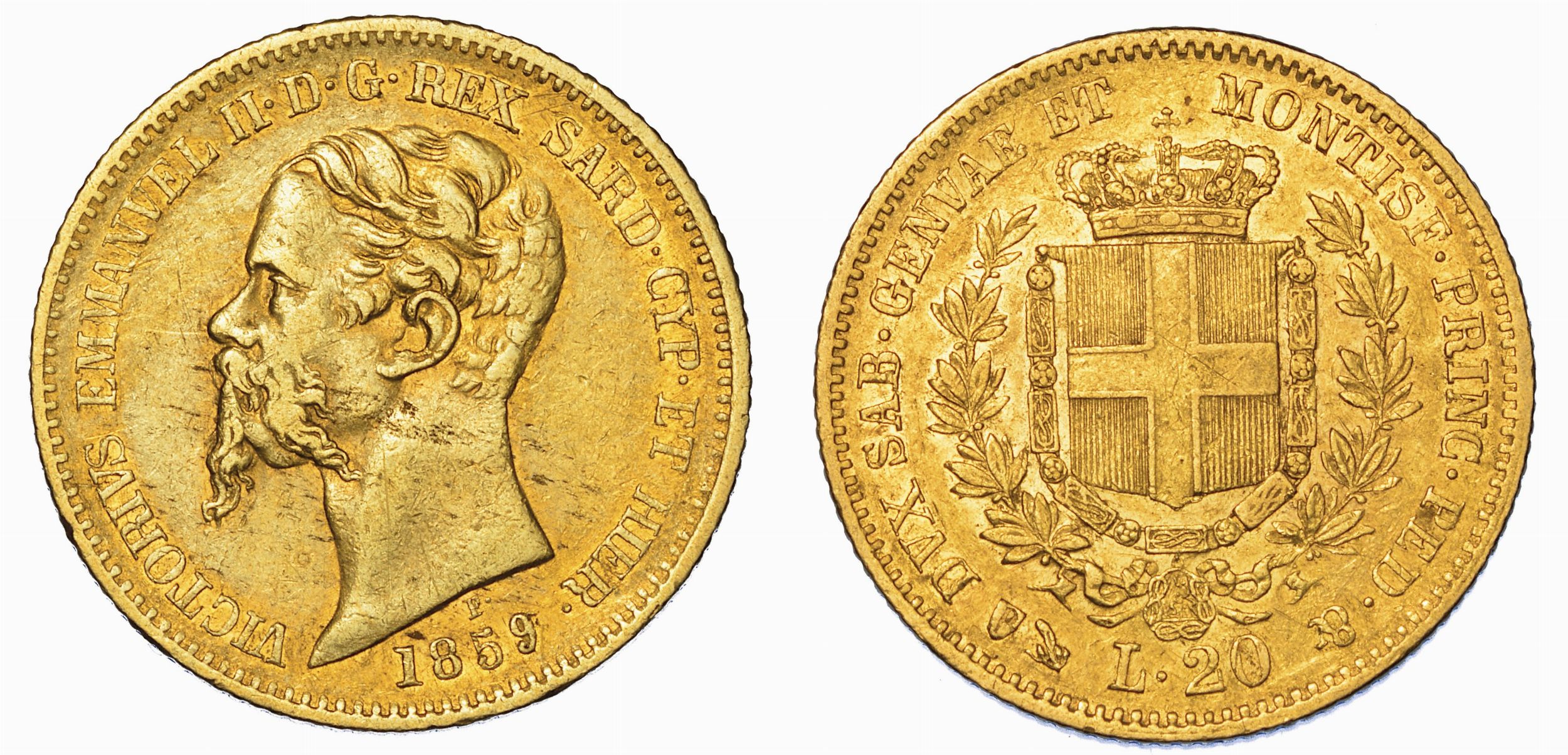 REGNO DI SARDEGNA. VITTORIO EMANUELE II DI SAVOIA, 1849-1861. 20 Lire 1859. Geno [..]